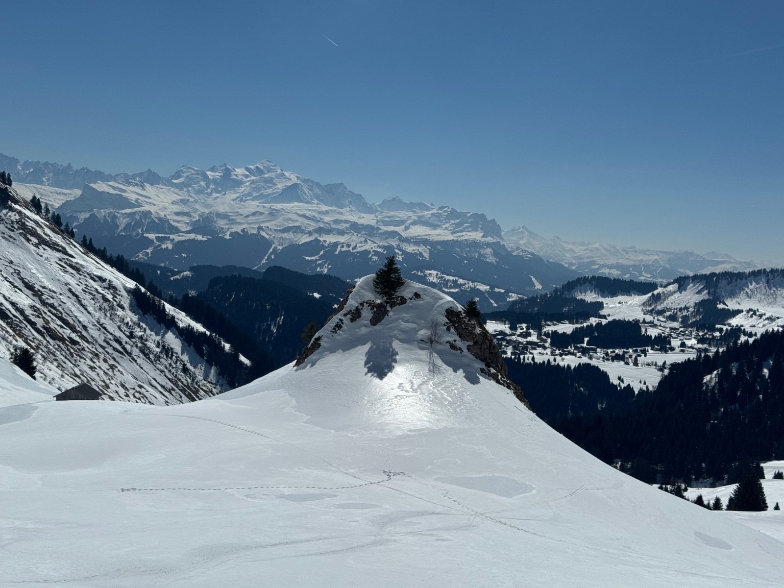 Nivo / Avalanches : Face sud instable. Le manteau, lourd et chauffé, présente un risque de départs spontanés (neige humide).