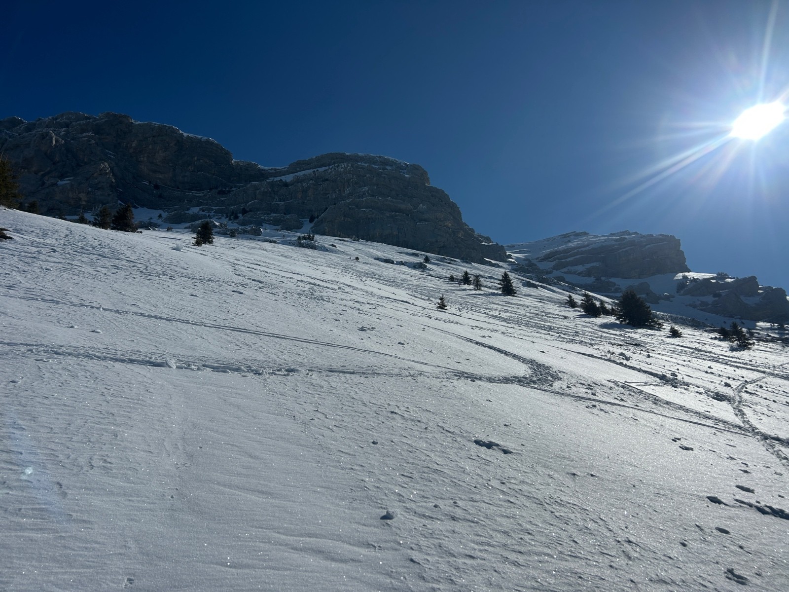 Conditions nivo et activité avalancheuse : tout est stable : croûte sur le sommet mais redevient poudreux au début de la combe NO