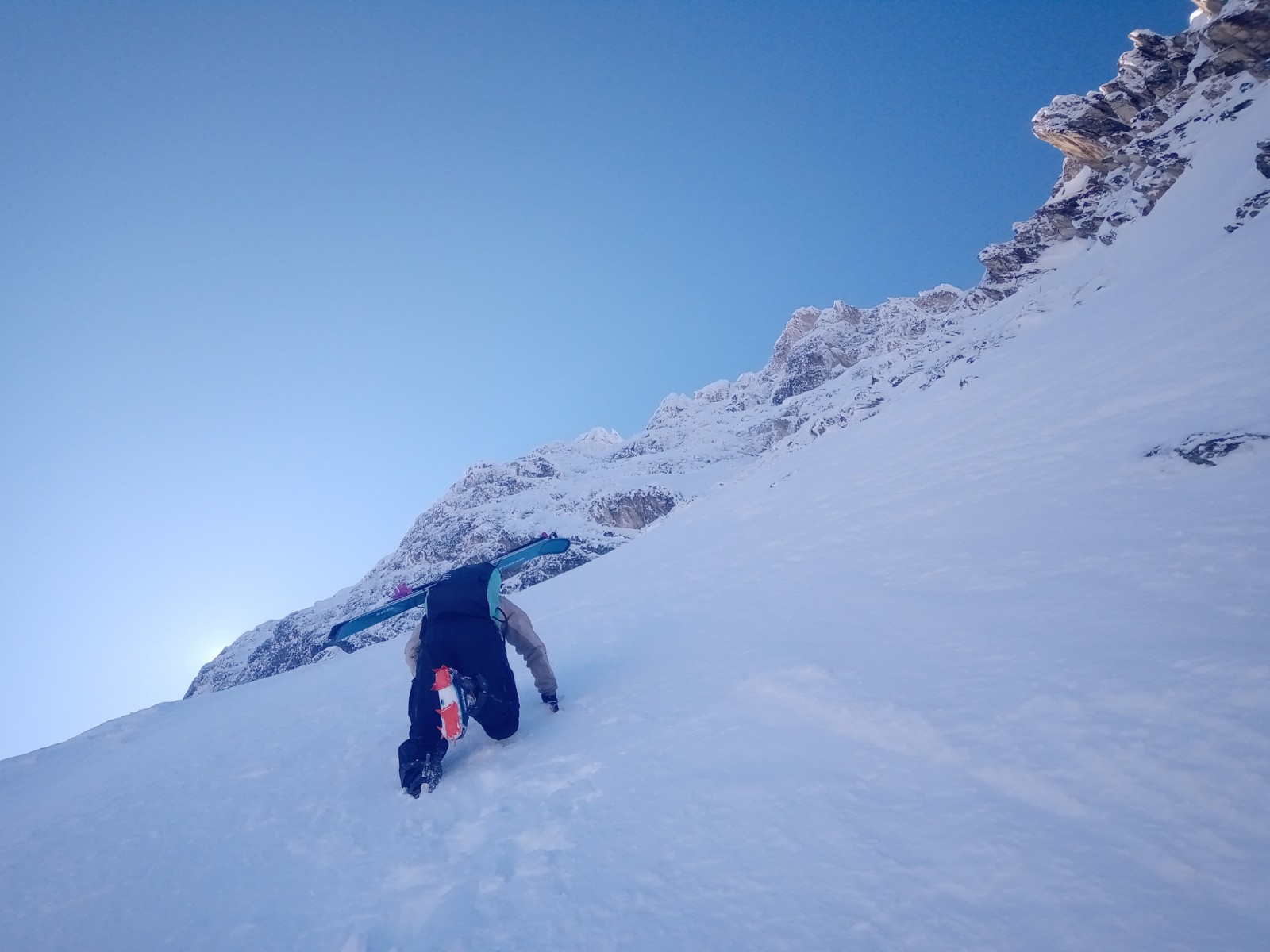 À noter que depuis les tentatives de 2019 Cailhol et Welfringer sont passés dans la face, avec une sortie au plus court en bas, voir le topo.