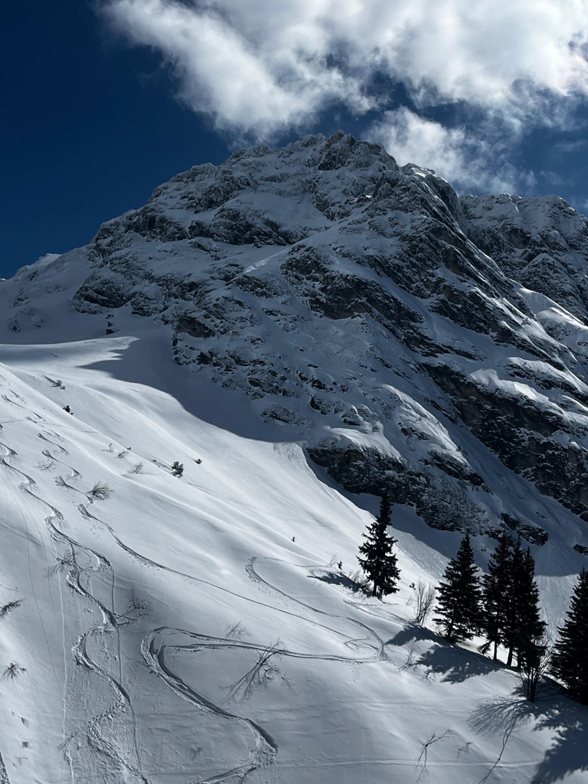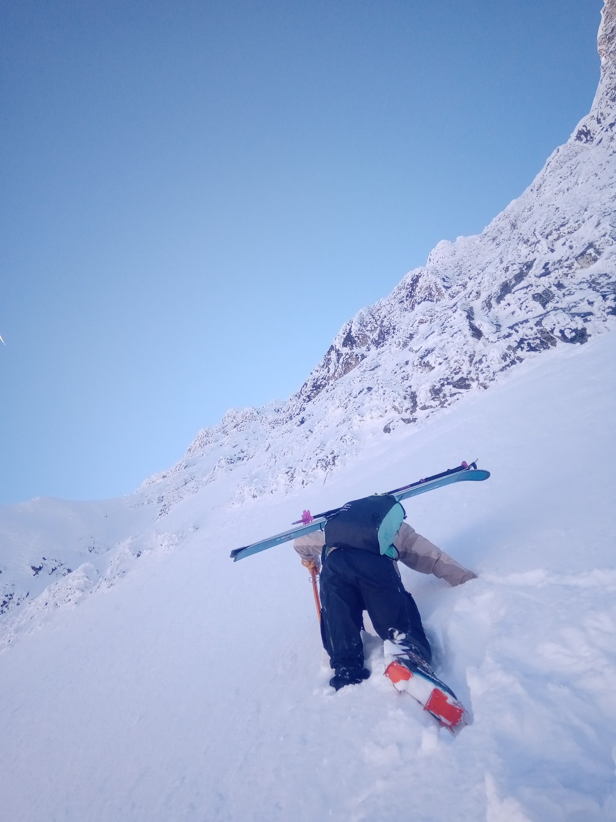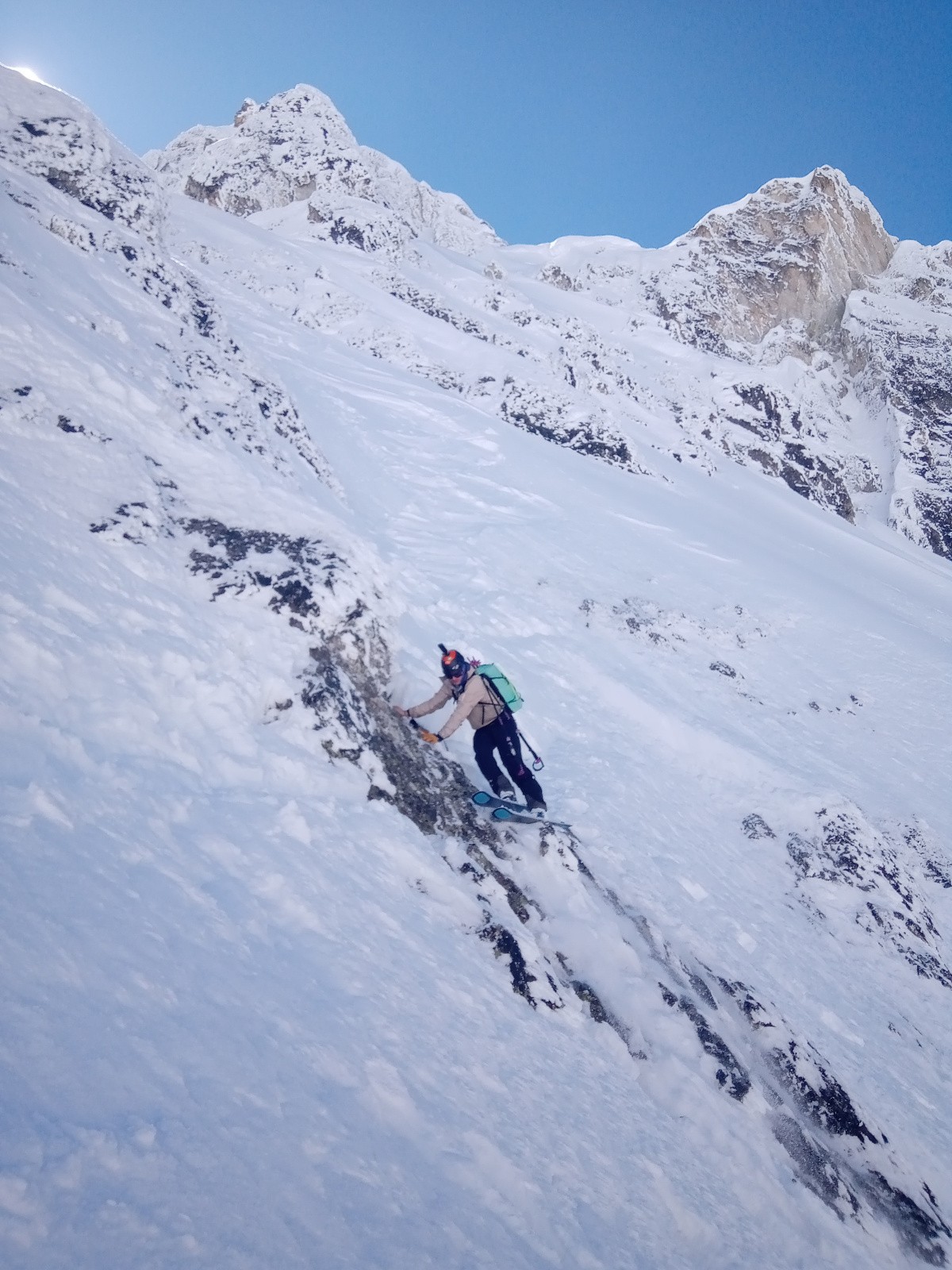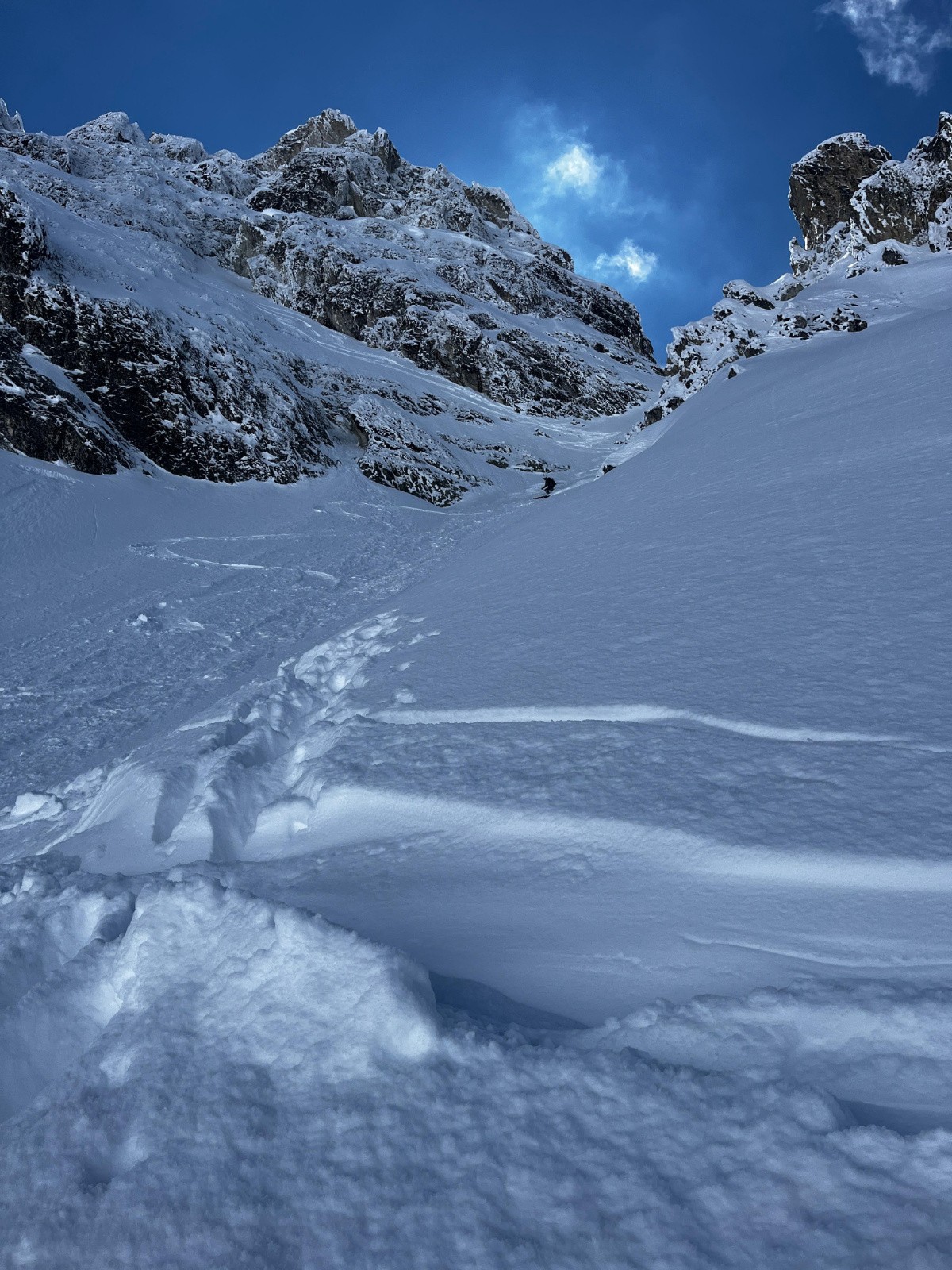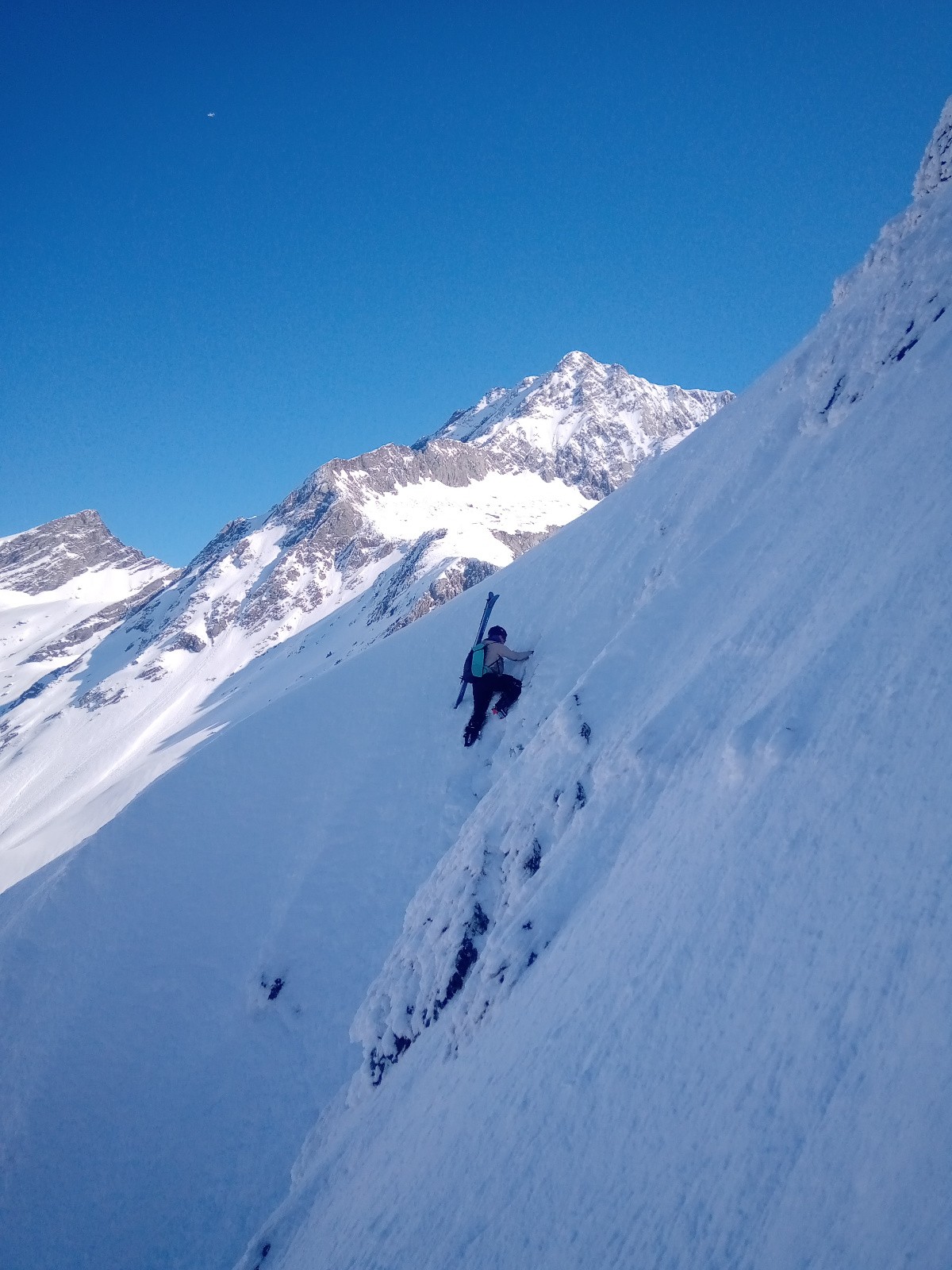 Conditions pour le ski : En nord superbe poudre, en nord raide de la poudre mais aussi faces planes et gobelets sans cohésion, en ouest légère croûte le matin bonne à skier une fois réchauffée, en sud en bas début de moquette un peu collante