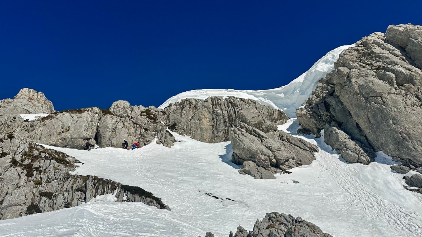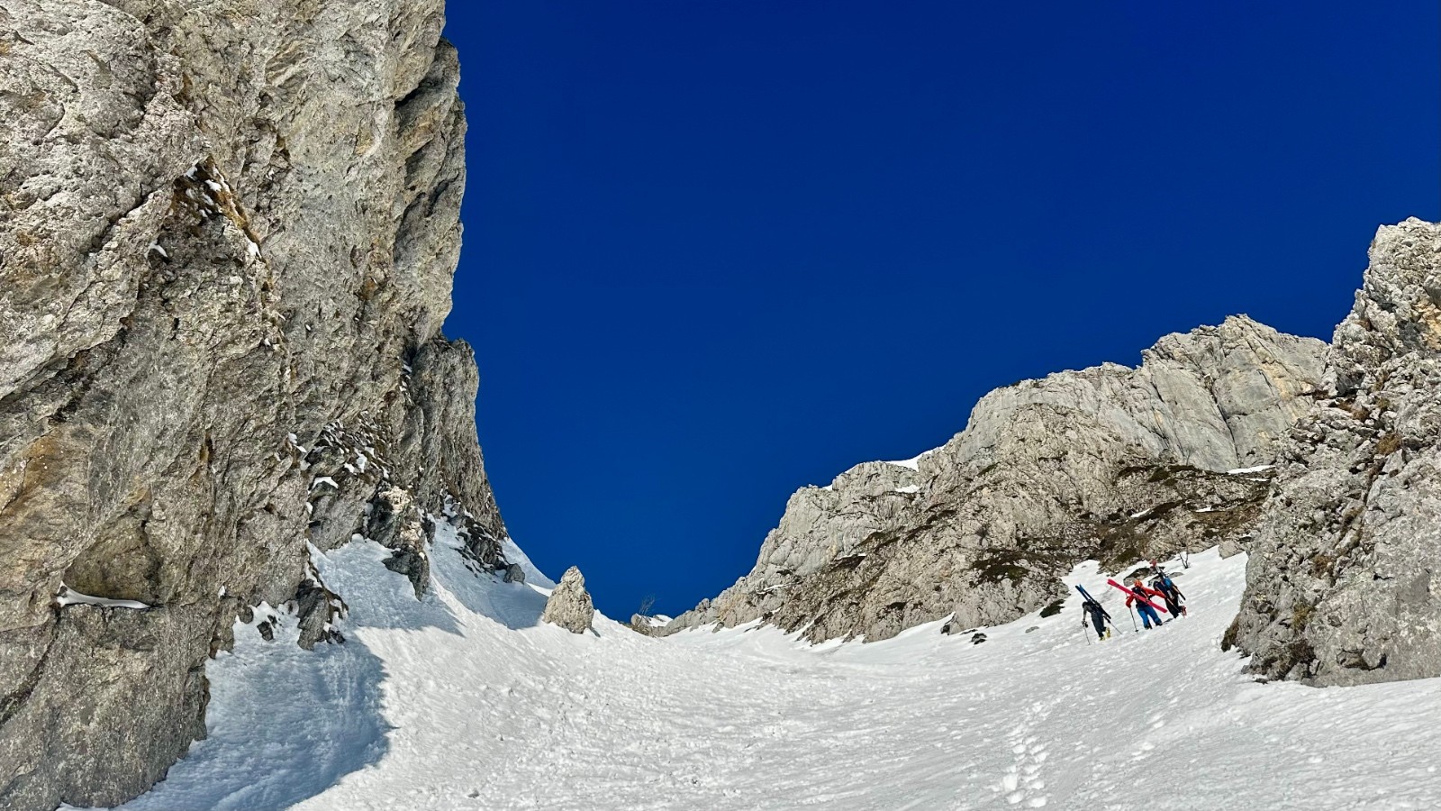 Un gars qui venait du gerbier et qui a prolongĂ© et 2 gars qui remontaient aprĂšs avoir skiĂ© une premiĂšre fois le couloir plus Ă droite. Avec de belles marches agrĂ©ables, je suis ce petit groupe improvisĂ©. Salut Ă eux, ils se reconnaĂźtront peut etre, surtout celui que jâai filmĂ© au sommet đ (avec son autorisation !). Biens sympas.