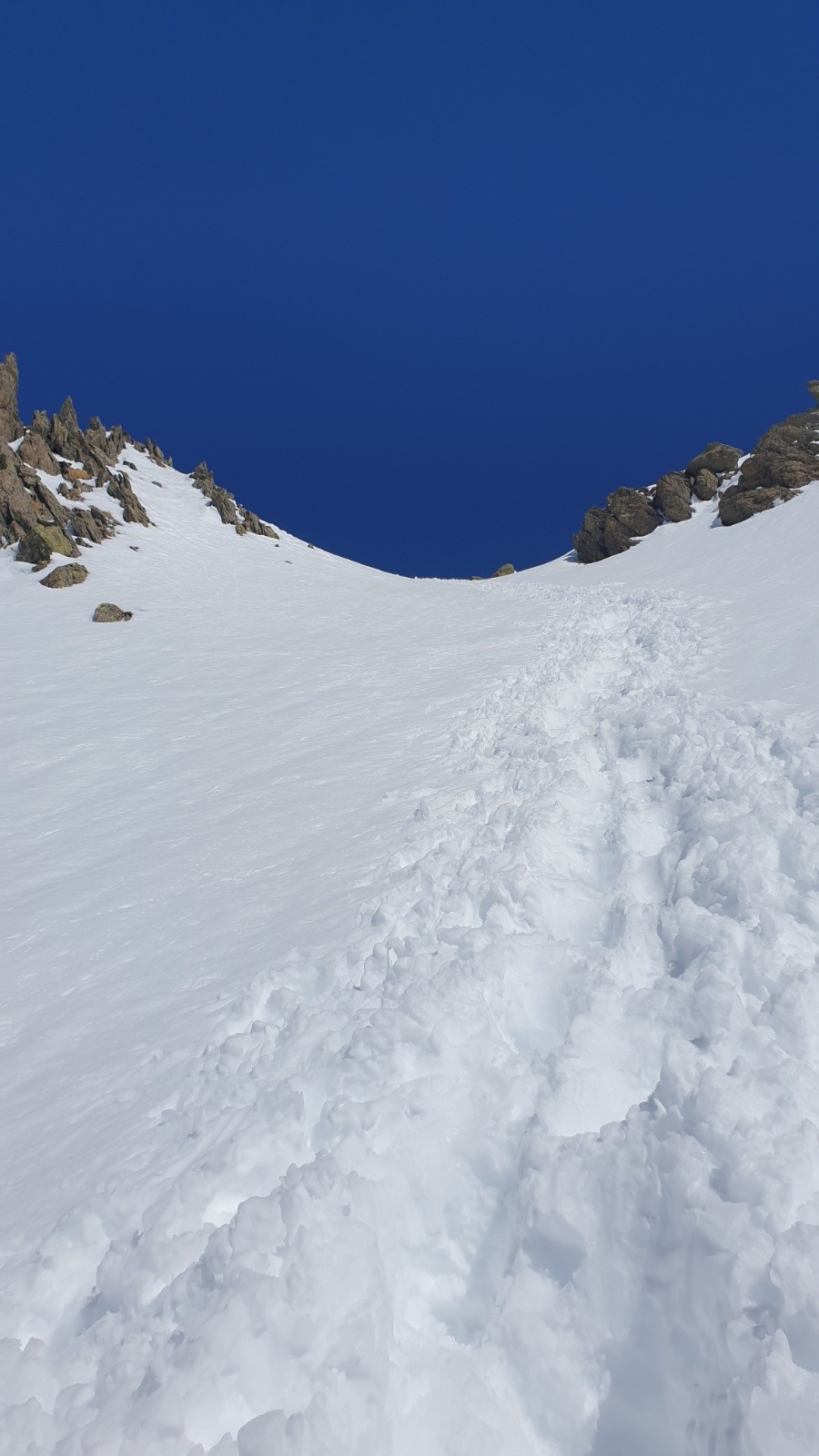 Conditions nivo et activité avalancheuse : très stables la grosse coulée du grand couloir deja tombée quelques petites purges dans le vallon de Berard l après midi