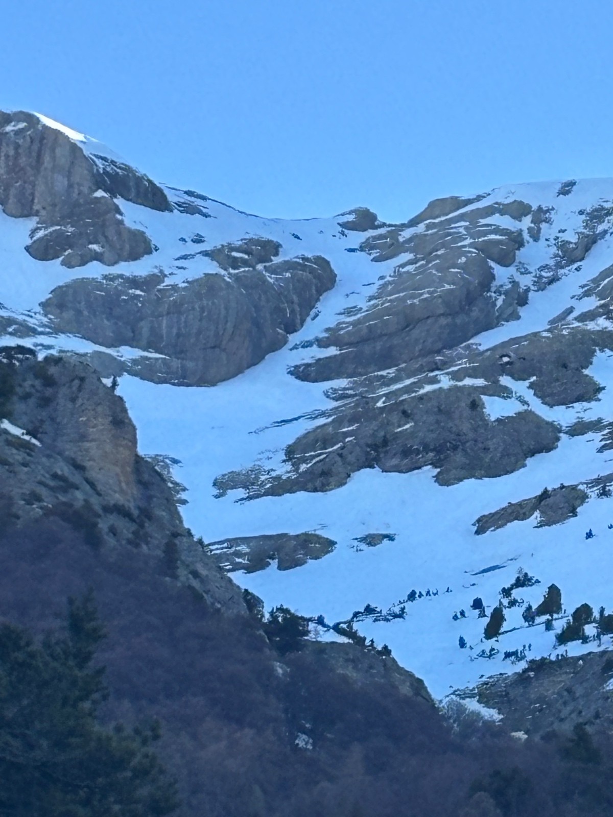Altitude de chaussage 1350/déchaussage :1350 grâce aux dépôts des avalanches