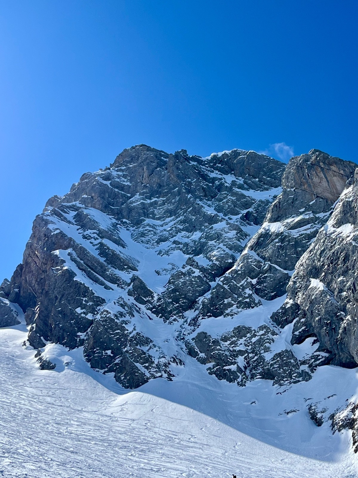 De retour au pied je ne sais pas quoi faire, il est tôt, il fait beau, autant en profiter. Un peu de ski en dessous puis je remonte une nouvelle fois dans la ligne, quand la trace est faite ça va quand même mieux. Je rejoins le sommet du Paré via le col. Petit A/R dans jardin secret ou j'avais une revanche à prendre. Condition vraiment pas terrible, des anciennes traces regelées, de la neige dure à l'ombre, beaucoup de relief et au soleil c'est déjà bien lourd mais le remplissage est bon cette fois. Arrivé à la jonction avec le NW la neige semble pas mal de loin. Je remonte au sommet dans la bonne trace, histoire de faire péter le caisson pour de bon. Pas de trace de ski dans la partie du haut, neige bien lourde à 14h qui me permet de sauter le premier ressaut. Arrivé dans le couloir à proprement parlé les anciennes traces apparaissent et la neige bien dure avec, vraiment pas terrible. Le deuxième ressaut passe en bricolant à ski. Le couloir du bas (rive gauche) et tout en poudre, finalement c'est là que je ferais le meilleur ski de la journée ! Dernier couloir/ressaut passe ski au pied sans soucis. Retour ensuite à la voiture dans une neige ultra lourde et collante vraiment horrible.