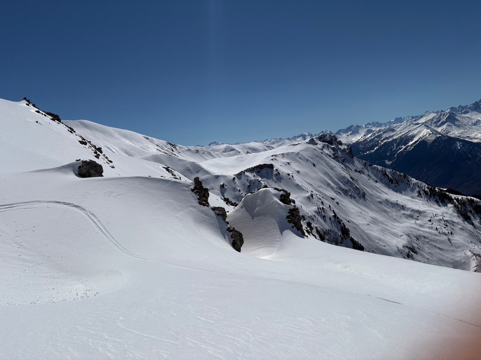 Conditions nivo et activité avalancheuse : voir ci dessus + nombreuses coulées observées sur les versants ensoleillés autour. Taille 1 à 2 plutôt.