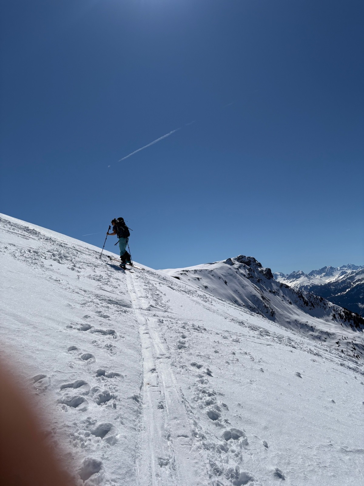 Suite à un cafouillage d’accès au parking (cf plus haut, on part une heure en retard. On adapte la course en conséquence pour éviter les heures les plus chaudes sur les pentes clefs ! Morale de l’histoire : avec cette météo, pour finir jusqu’au grand coin tout en limitant la neige humide, on aurait dû partir 1h30 plus tôt.