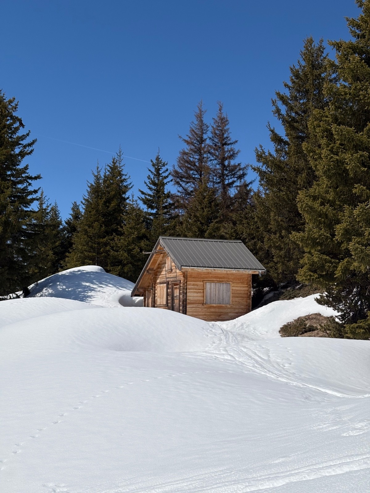 Conditions pour le ski : plutôt bonnes. On porte jusqu’à 1770, puis on chausse pour l’accès à la forêt. La neige est ici restée plutôt froide et transformé peu pendant la journée. Pour la première pente à 30degrés, à 2000, la neige a déjà un peu chauffé à 11h30, mais elle n’est pas encore trop humide. Au retour, à 13h30, elle est transformée mais encore plutôt portante. A noter qu’il y a peu d’épaisseur à ce niveau, dégarni parfois ! A 2300, pente à 30-35 assez courte, bien trafollee dans tous les sens. Elle est orienté plutôt nord ouest et est encore cartonnée à notre montée à 12h, 12h30. A la descente, à 13h, elle est encore bien froide et pas du tout transformée.