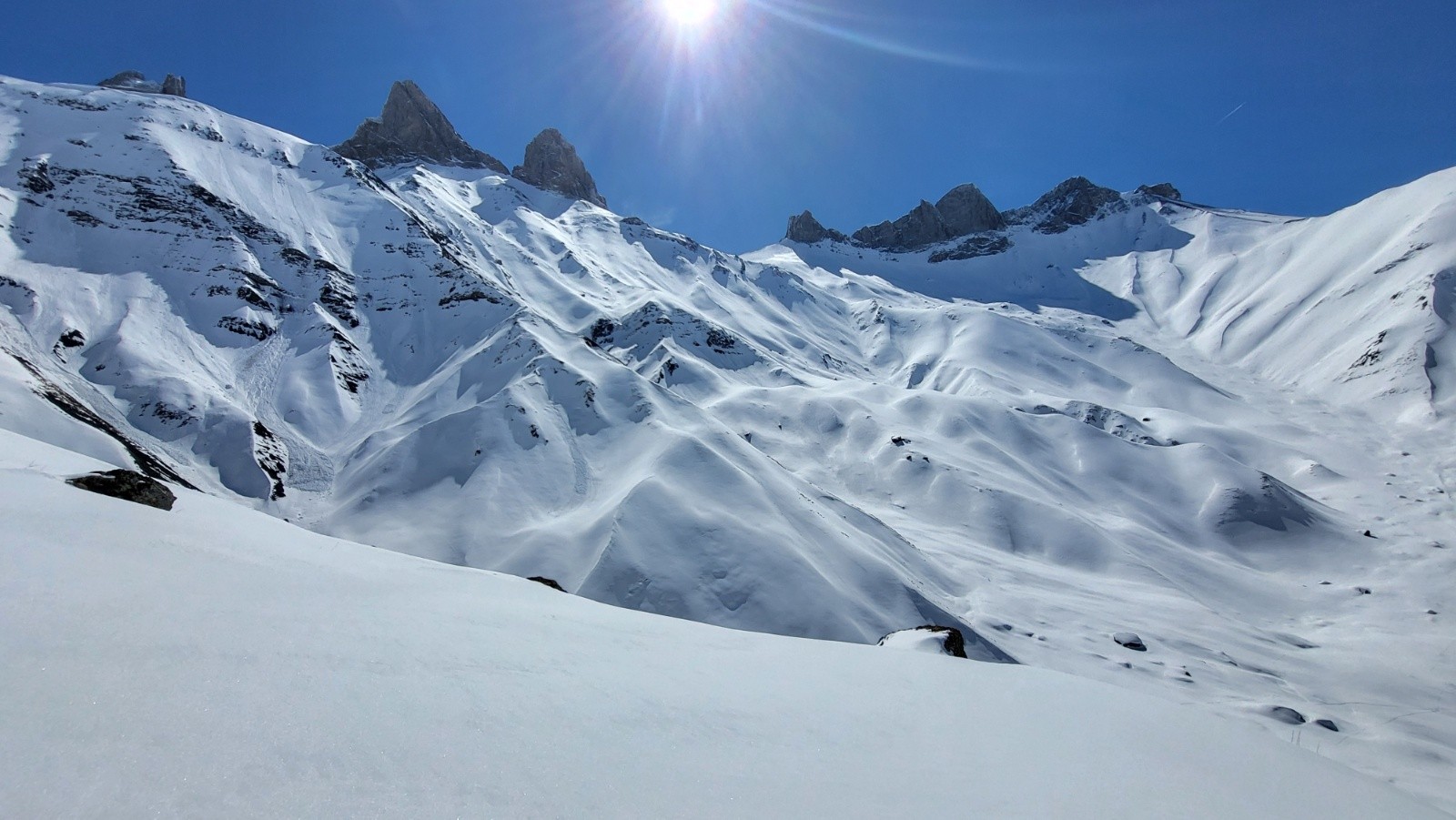 J2 Descente intouchée et remonté à droite. Quelqu'un à tracer du bas vers 2000m vers la "Crête du Jetolet" en suivant "La Tranchée".