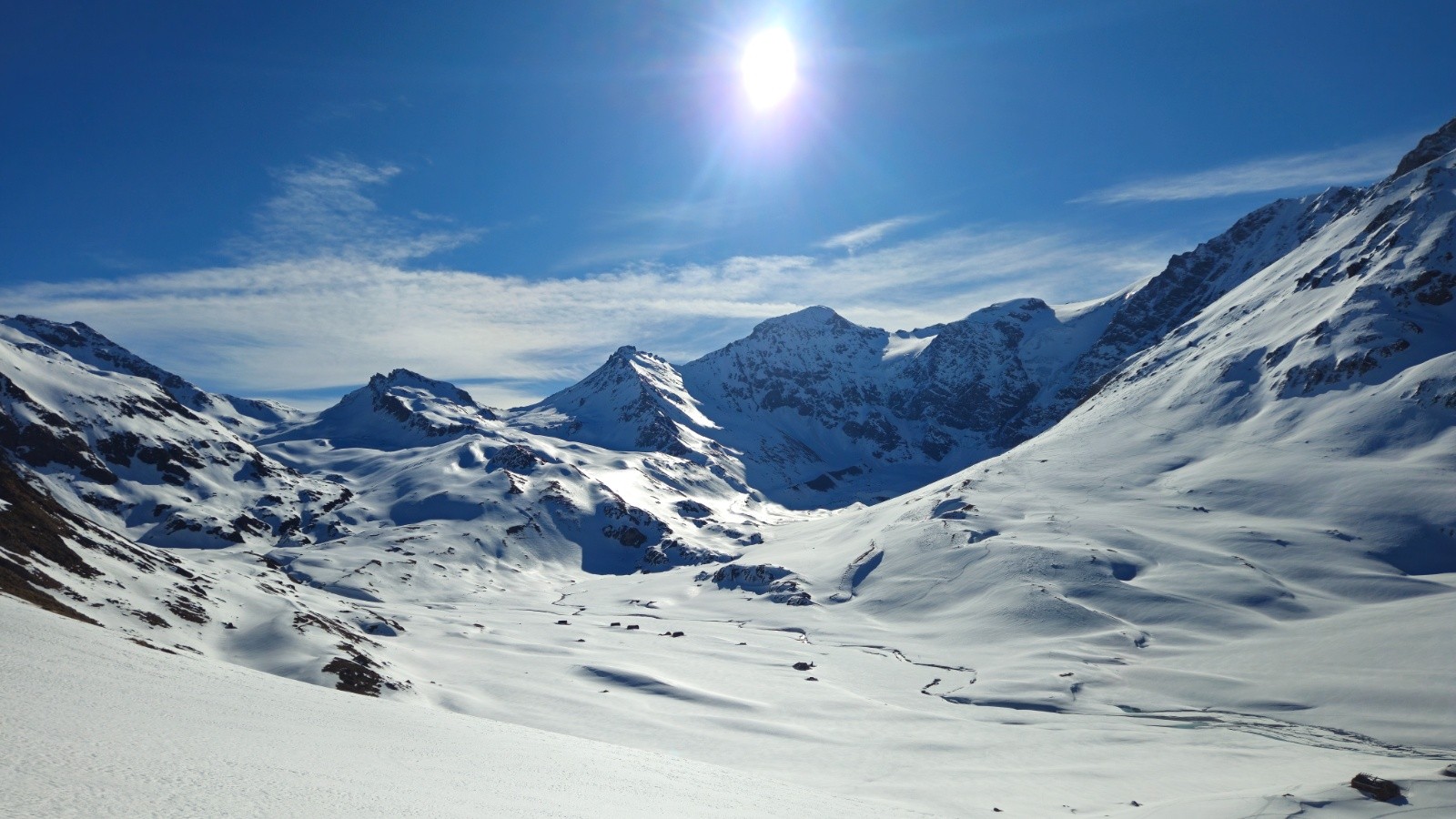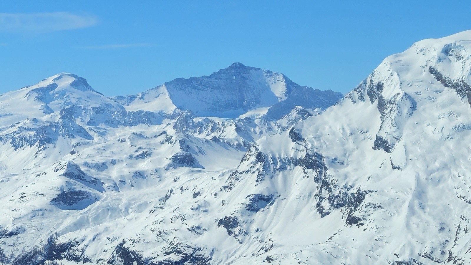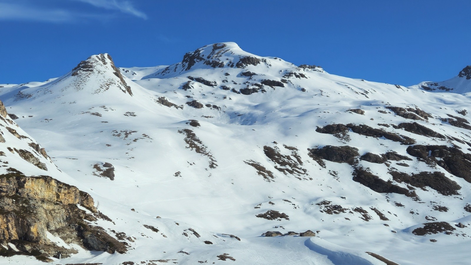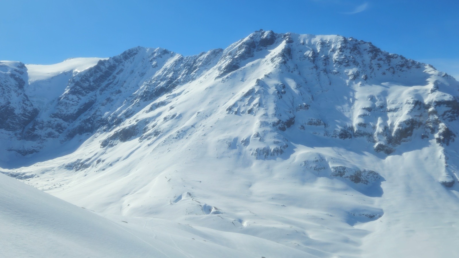Après une montés sans histoire - même si il y a toujours de la distance dans ces grands vallons, on arrive enfin au sommet pour profiter de la vue à 360 degrés sur la Grand e casse, le Mont Blanc, les Jorasses, et toutes les montagnes du coin. Superbe.