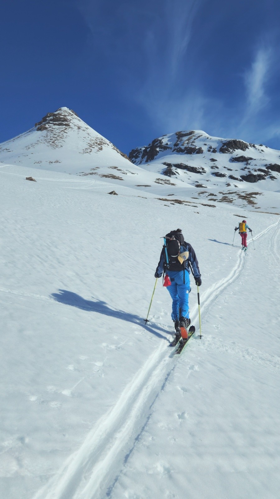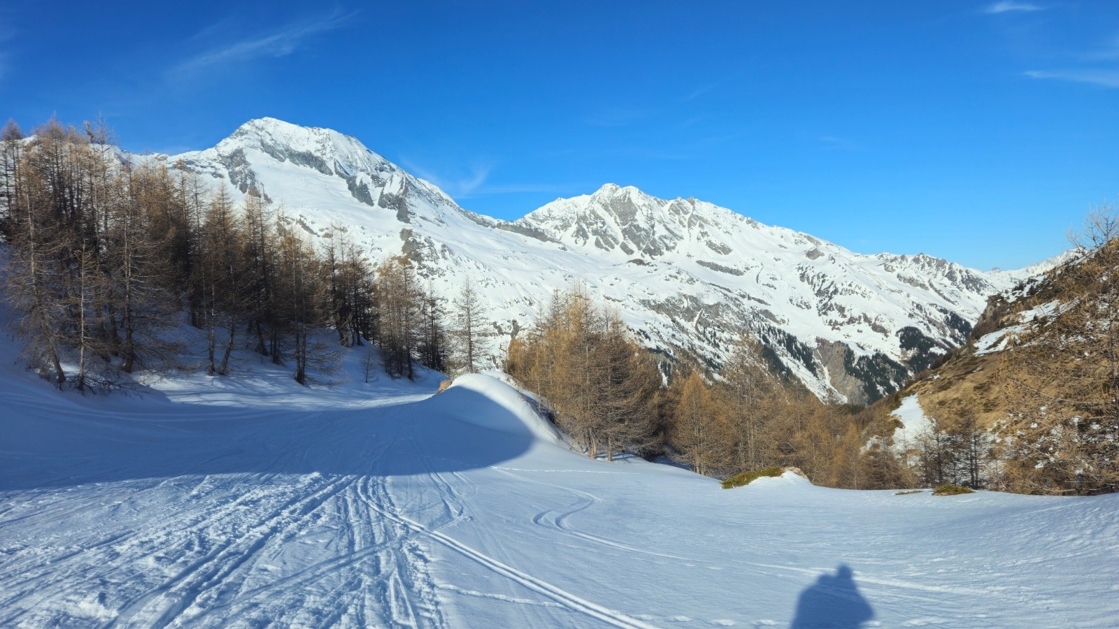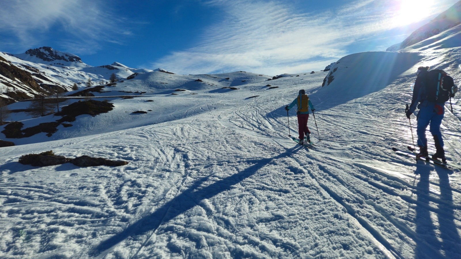 Finallement le retour est moins long que craint, cela passe assez vite. On trouvera même la meilleure neige du jour dans les dernières pentes skiables avant de déchausser!