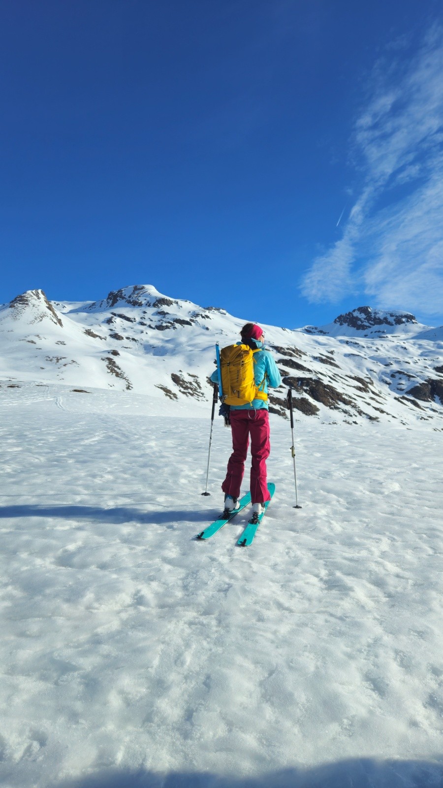Une heure de portage plus tard, nous chaussons et profitons de la vue sur le Mont Pourri omni present pendant toute la montée.