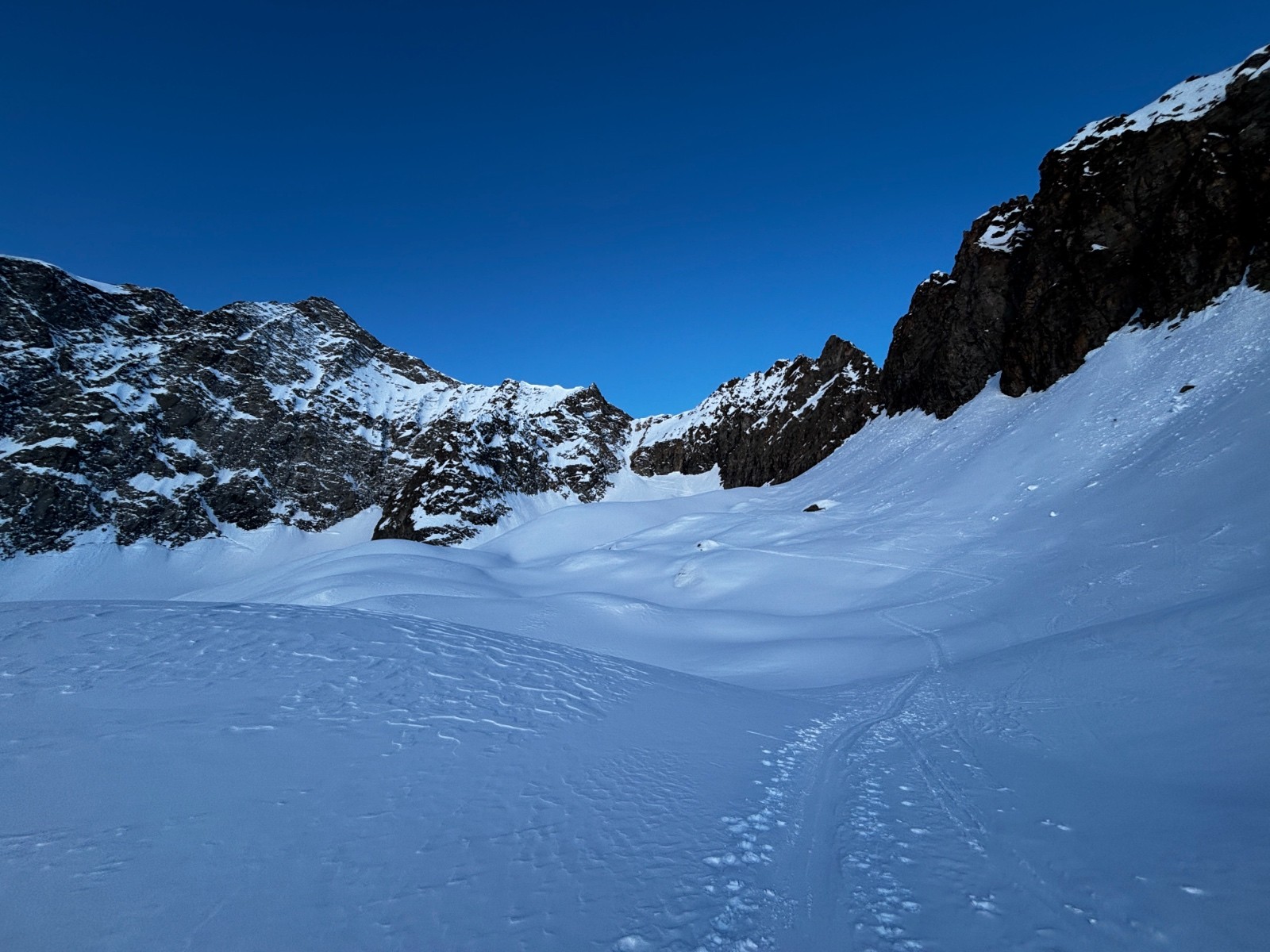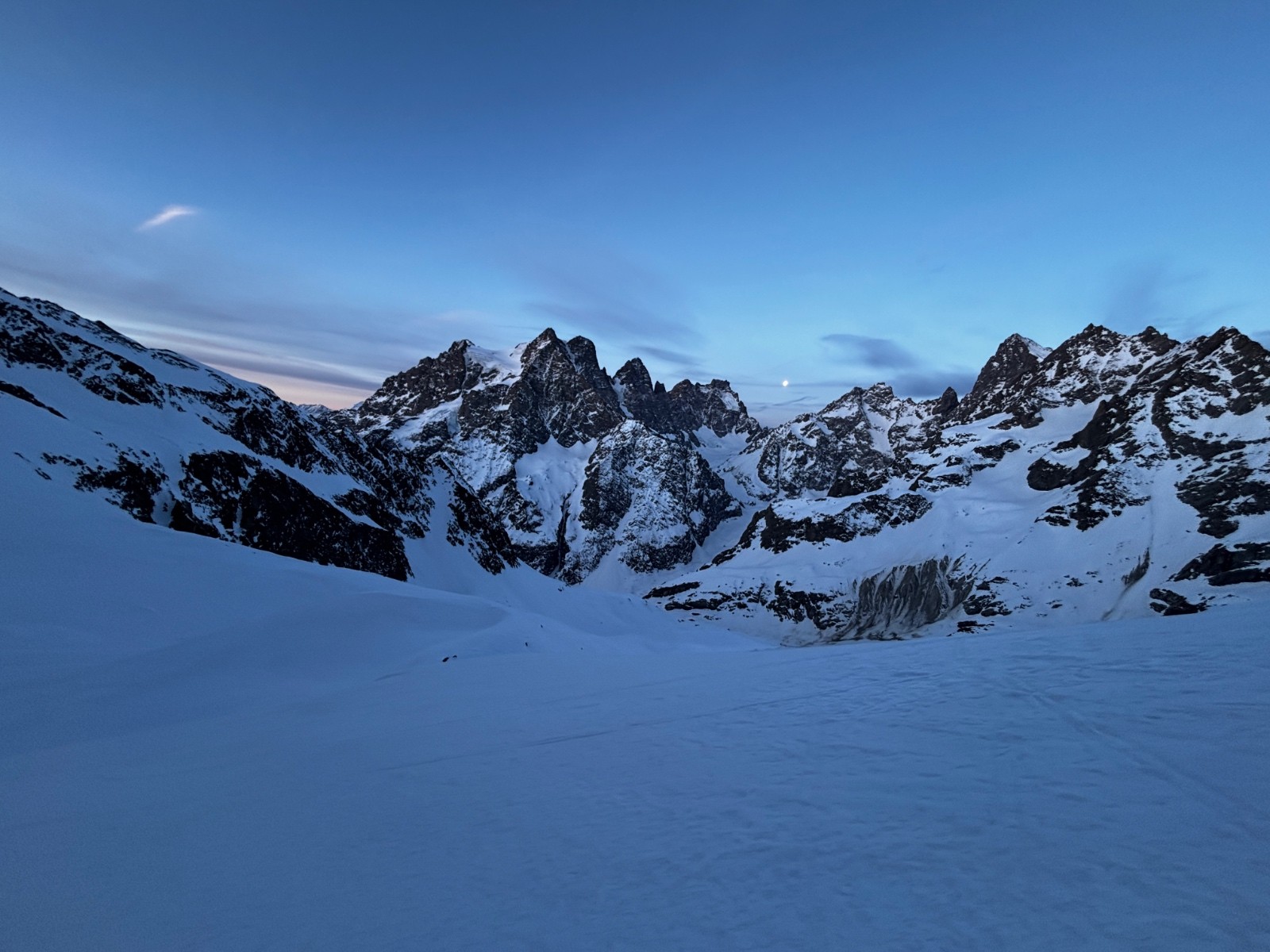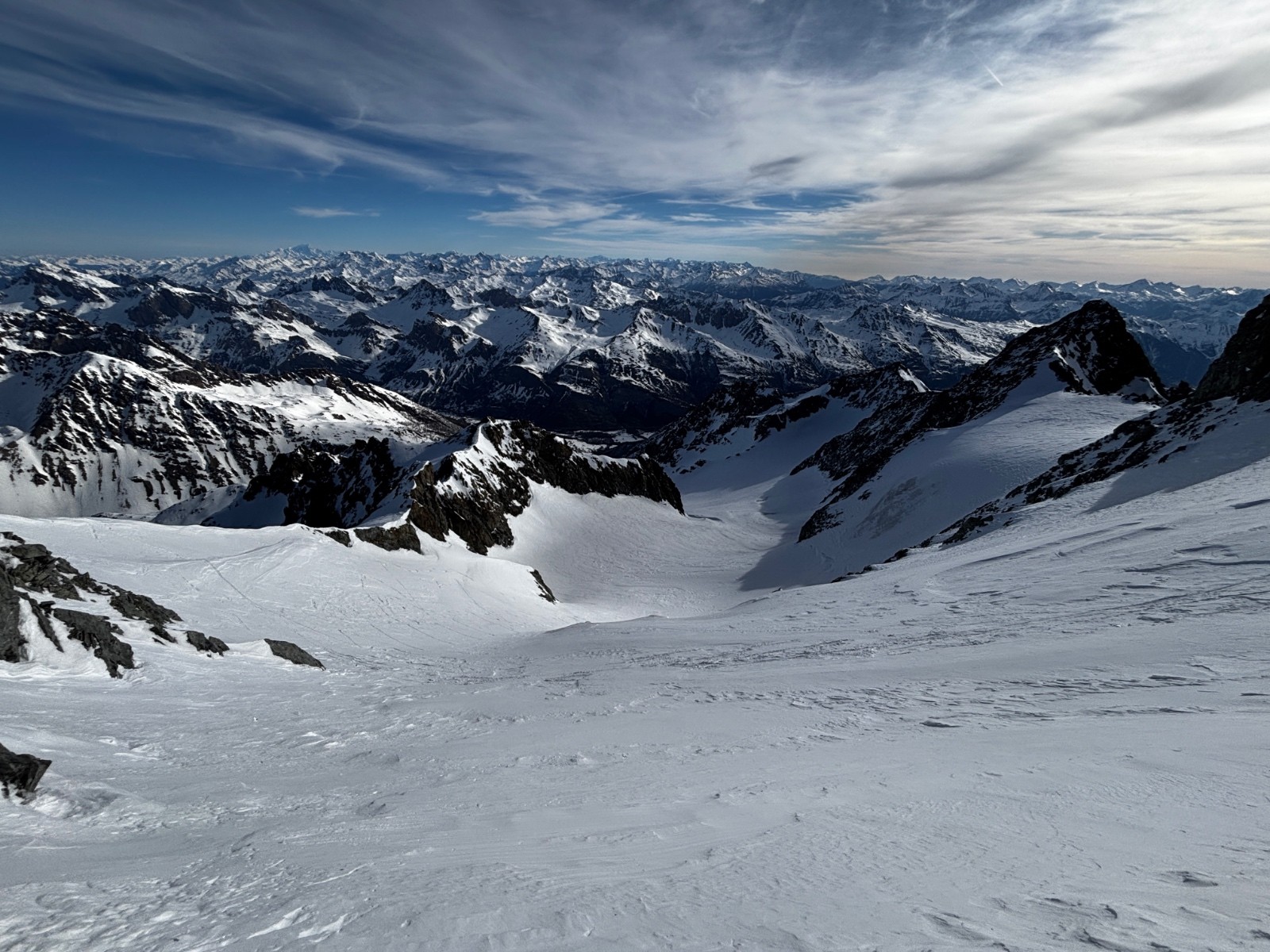 Un tour qui nous aura régalés non par la qualité du ski, mais plutôt par les passages alpins et panoramiques tout du long! Il en faut peu pour être heureux.