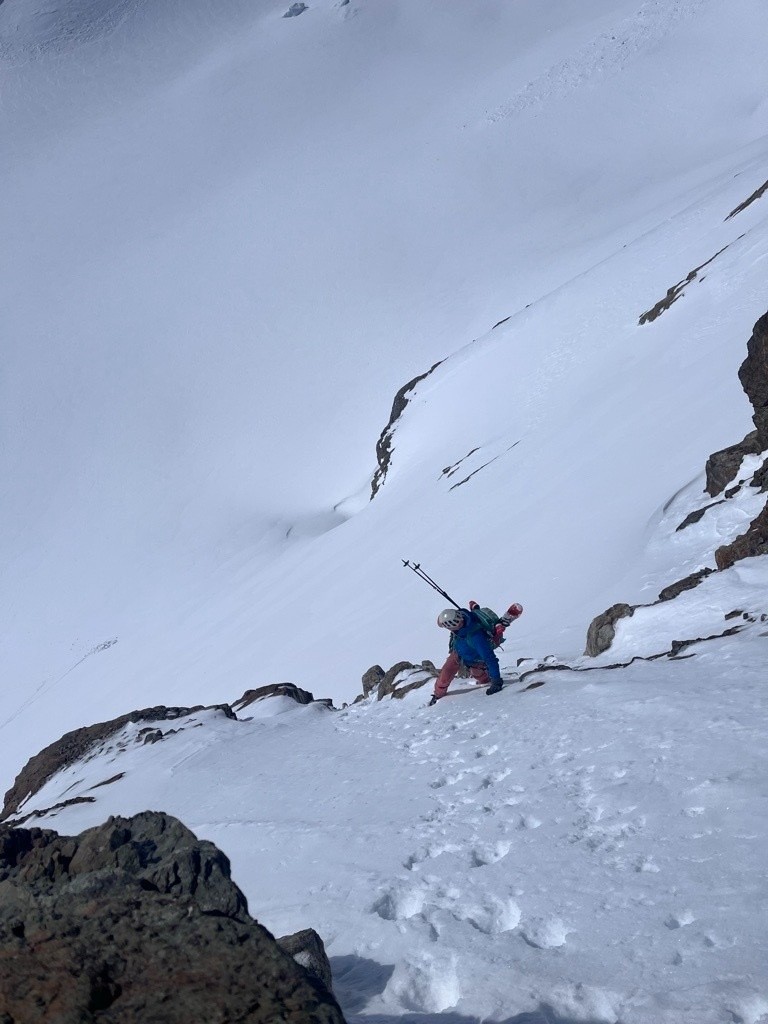 Conditions pour le ski : la pente sous l'arête 3400-3600m bonne transfo ****, sinon plutôt neige froide soufflée tantôt *** tantôt ****