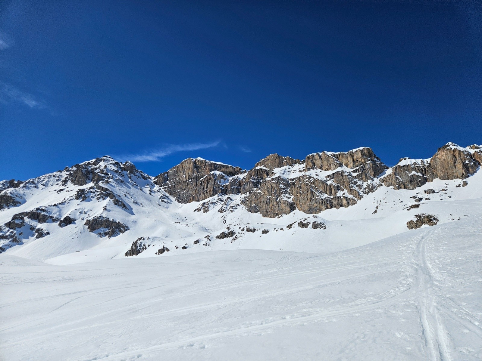 Montée cool en coupant les lacets de la route, puis une fois dans le vallon, un peu plus dur dans de la neige déjà revenue. Ca s'est sacrément accéléré depuis le milieu de semaine...