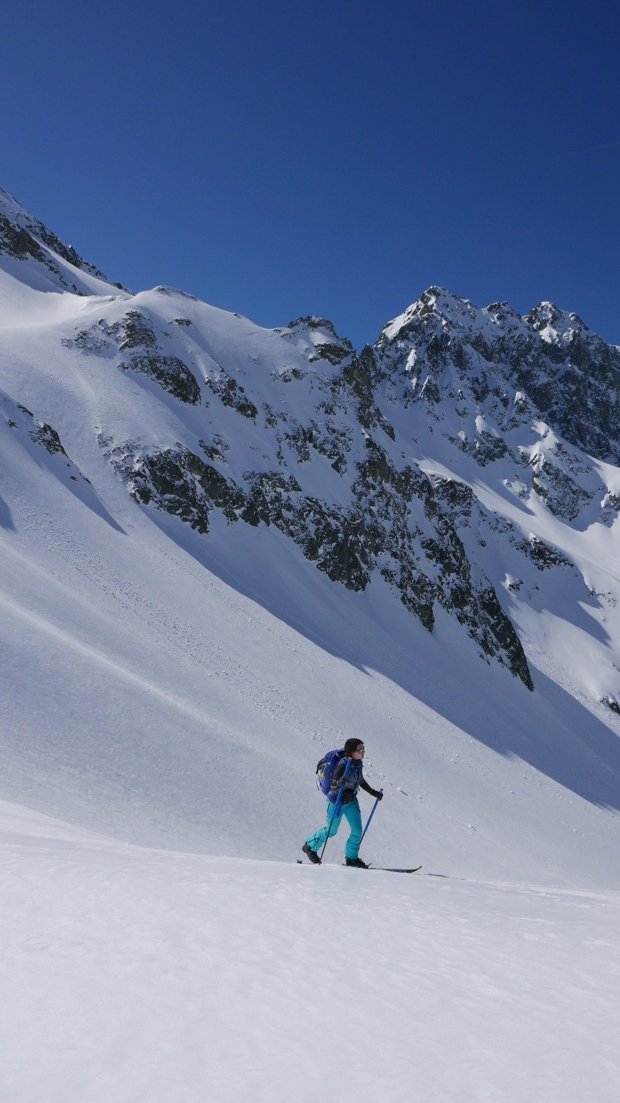 La montée au col des Fontaines Sud, on la connait et elle passe bien. A noter qu'à 10h30, elle était parfaite à redescendre.