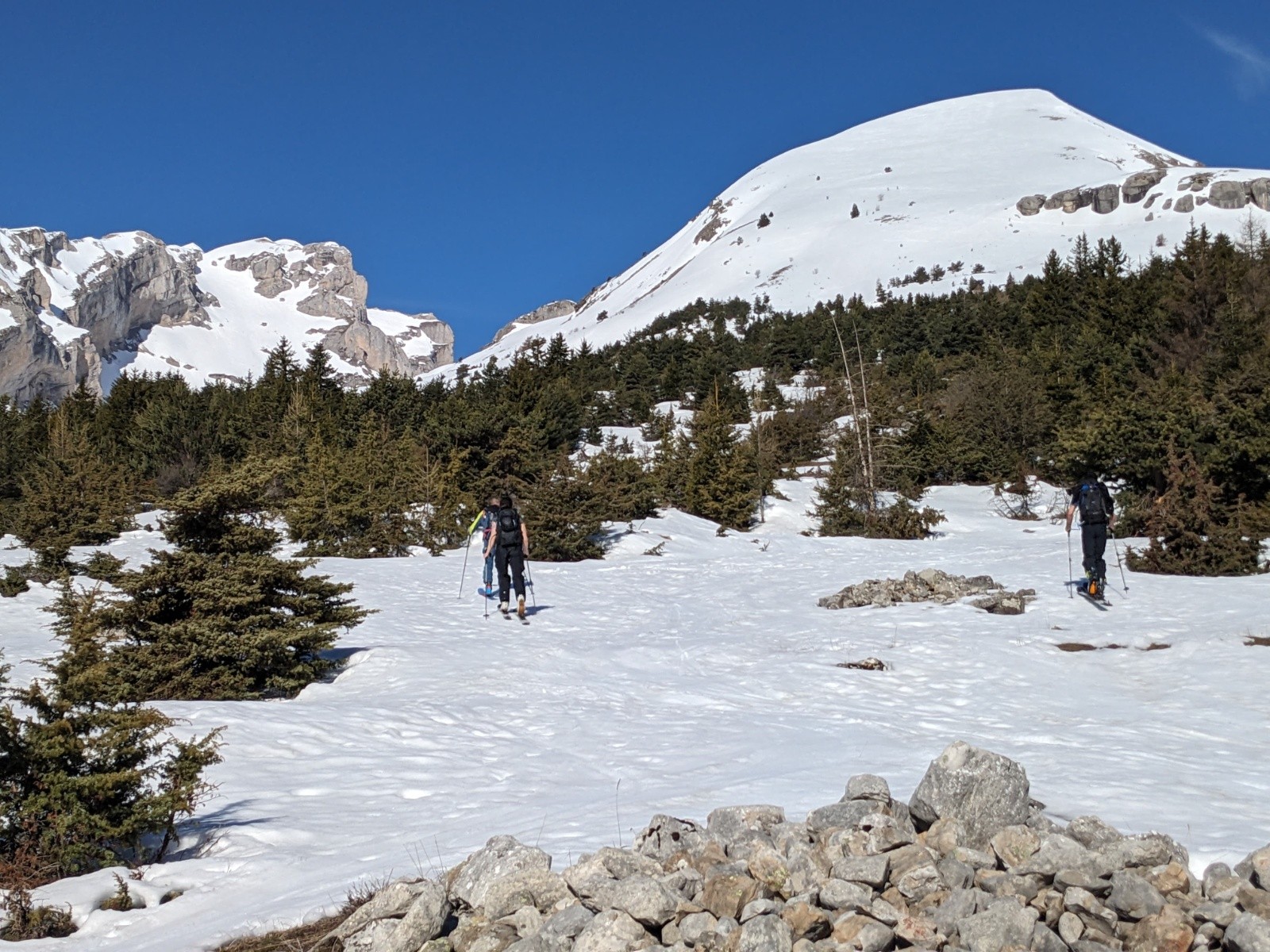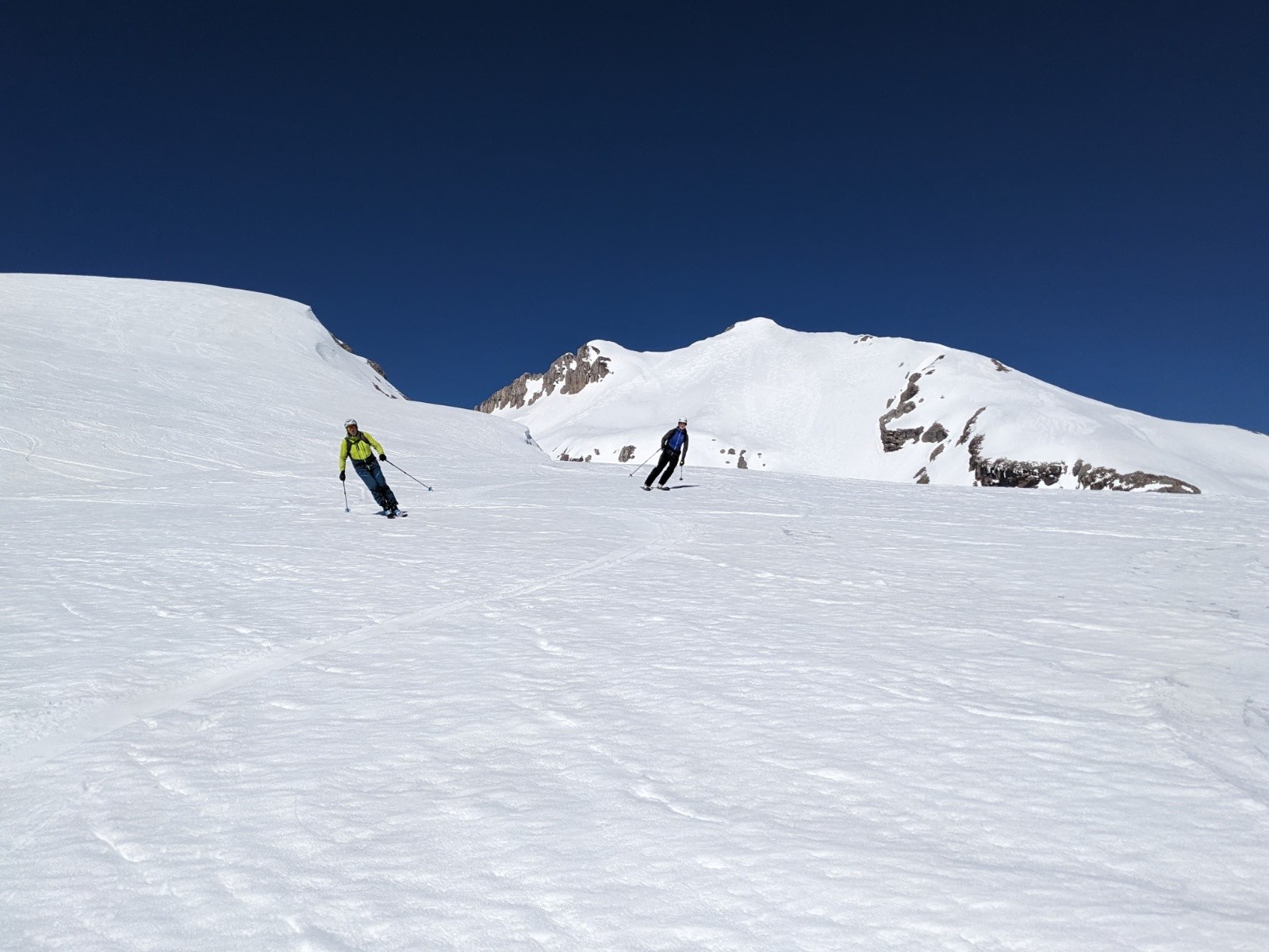 Conditions pour le ski : Printanière : neige agréable à skier, bien revenue sur fond dur qui parfois devient mou, donc un peu piegeuse