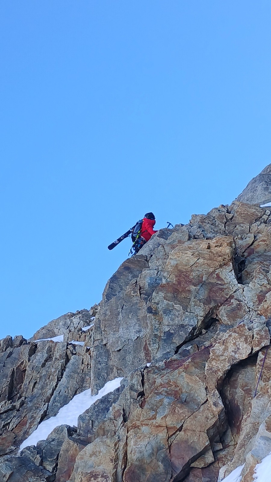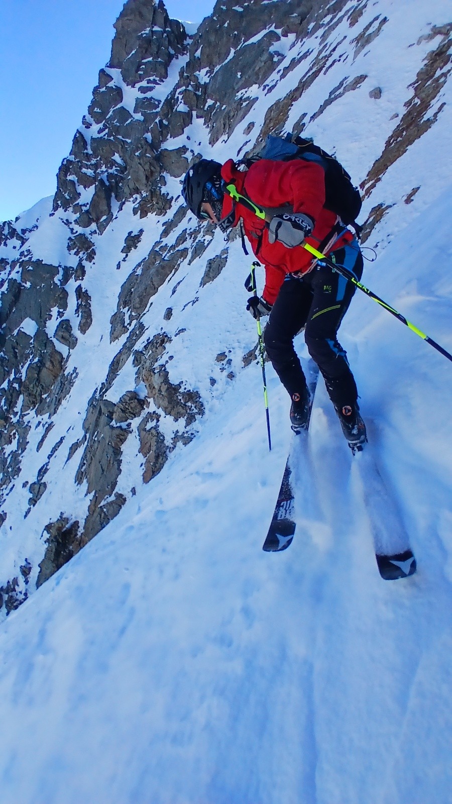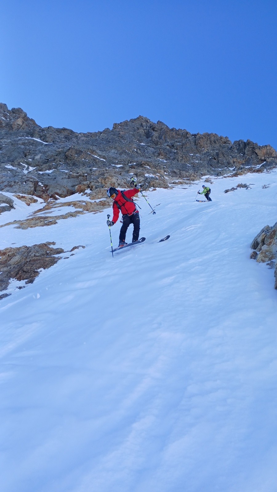 Déjà l'heure de la descente. Comme prévu le couloir W est béton mais il y a quand même un petit grip qui nous permet de tourner sereinement.