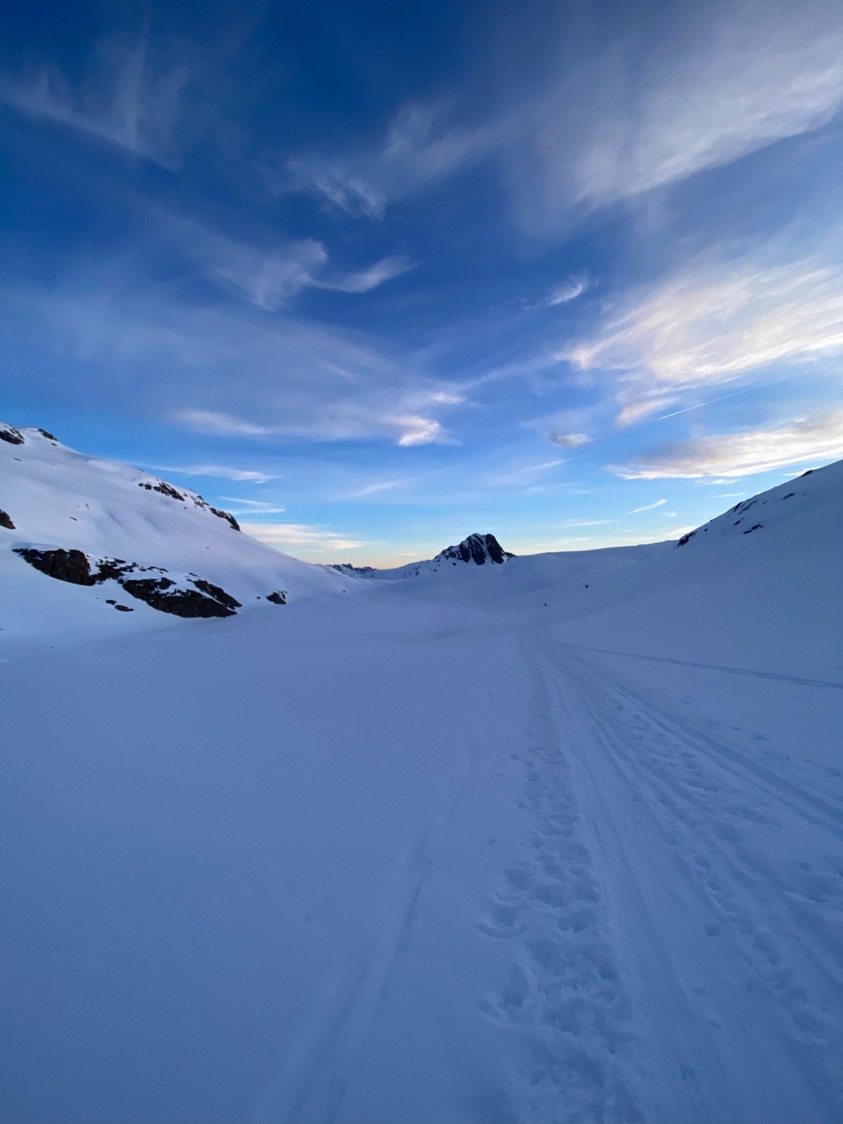 Avec Abel on avait l'envie d'aller mettre les skis dans cette écharpe hyper esthétique. Alix, qui était déjà au refuge est bien motivé aussi et se joint à nous. Le reste de la troupe part à la Cochette.