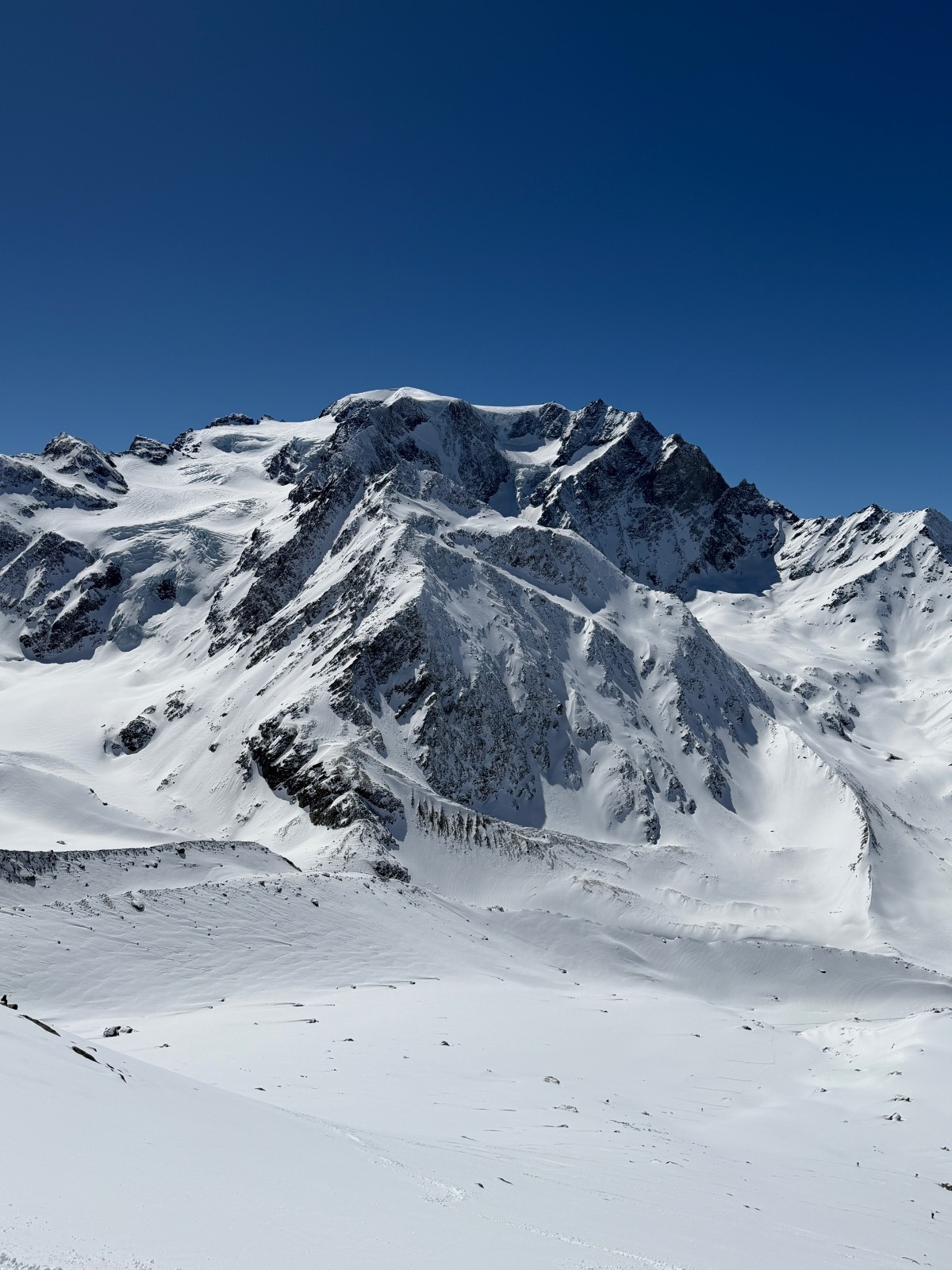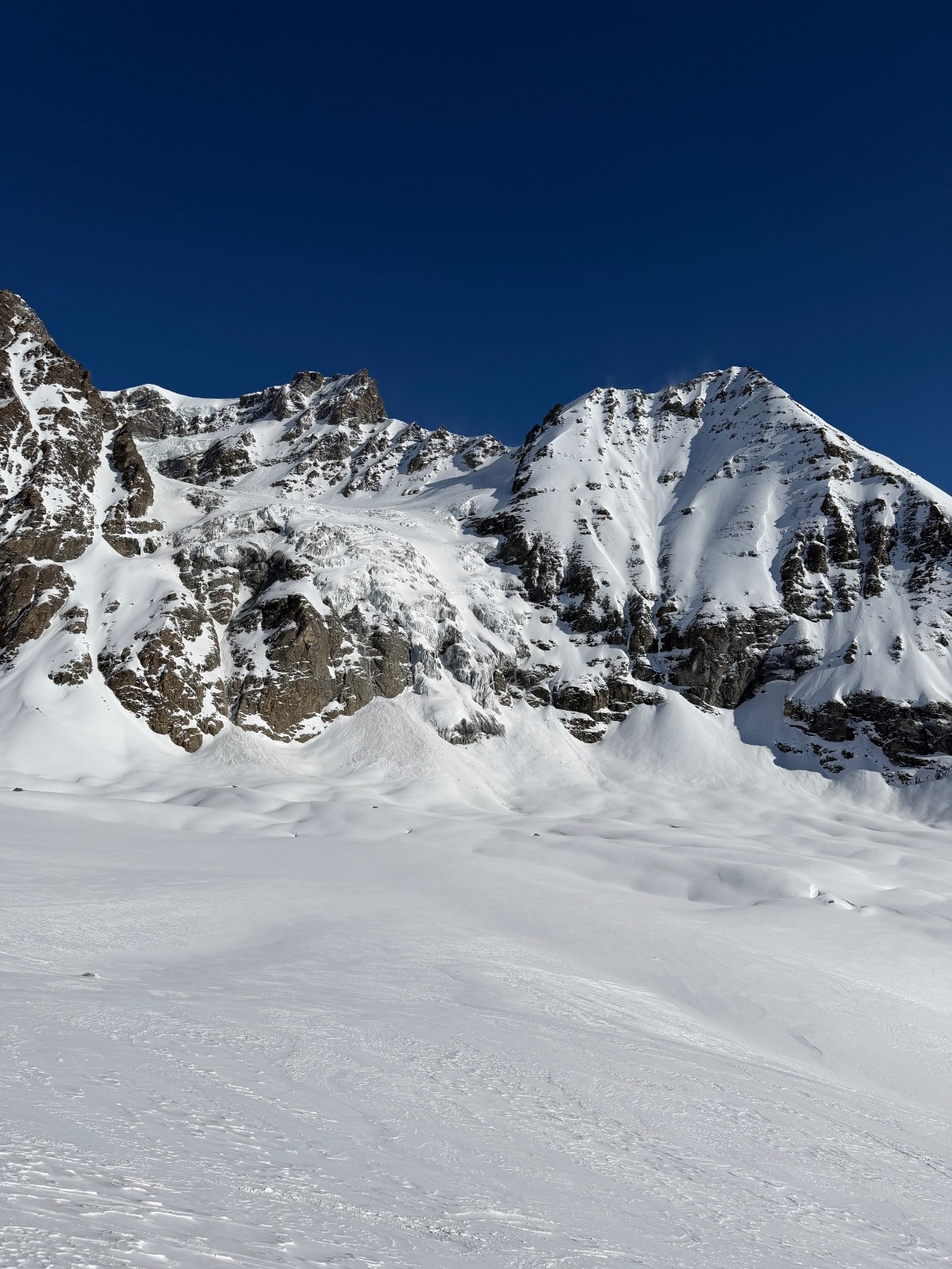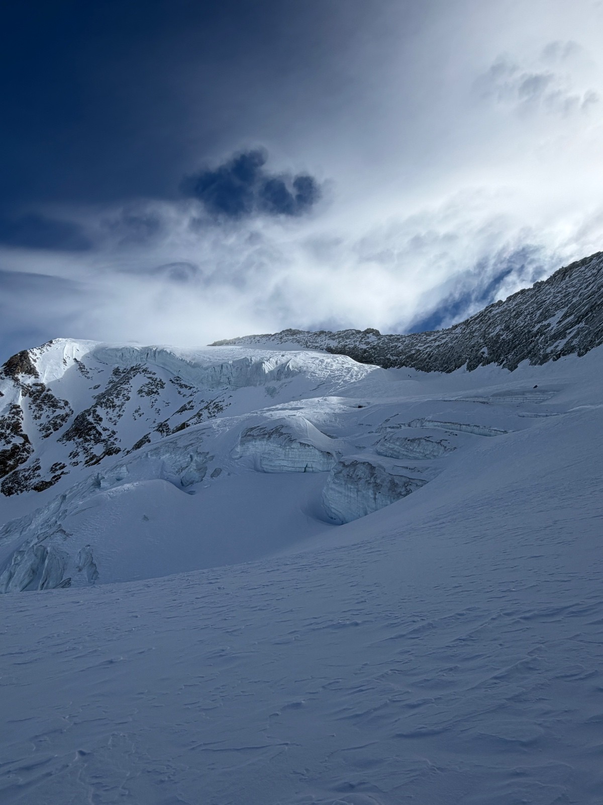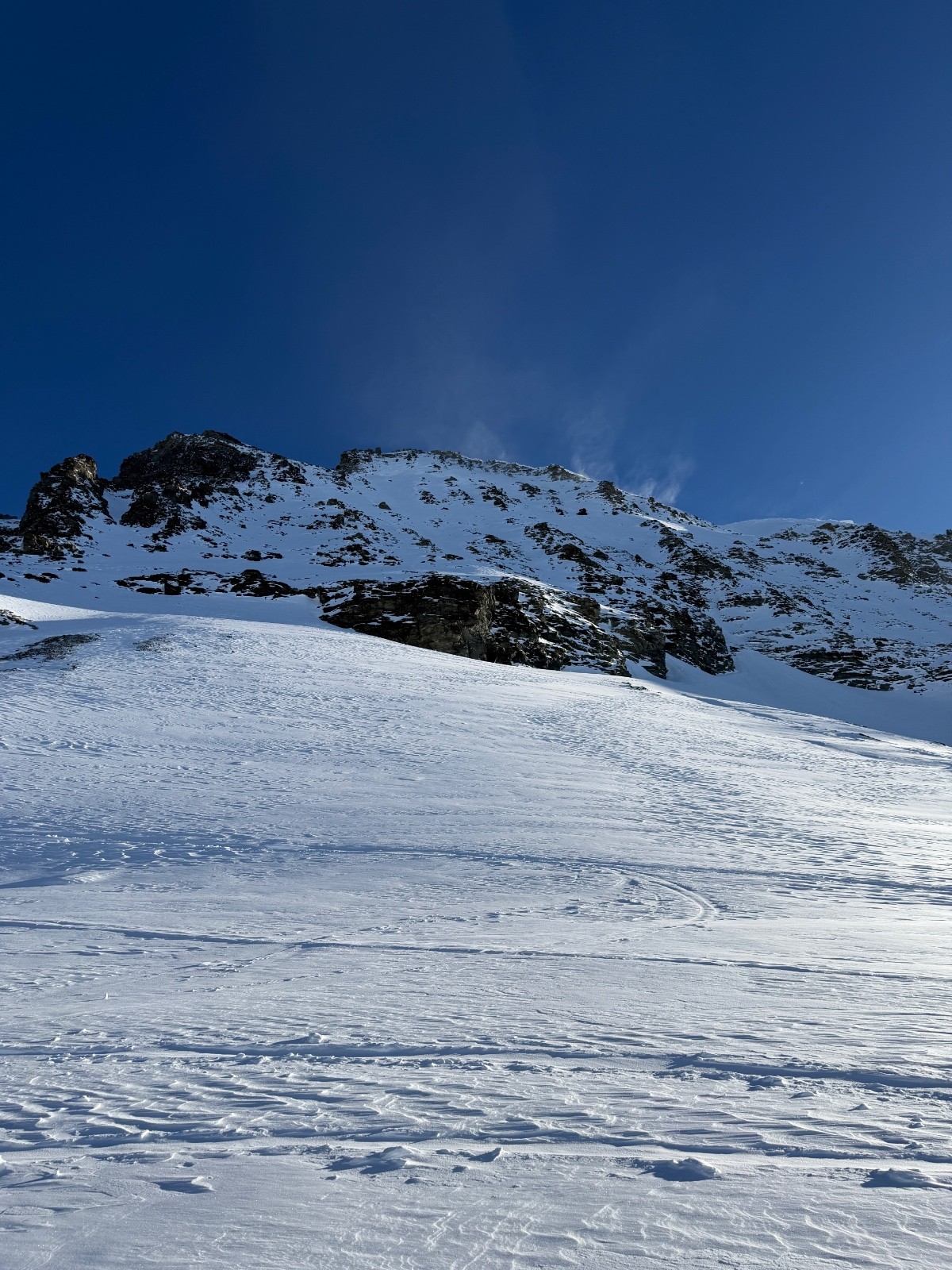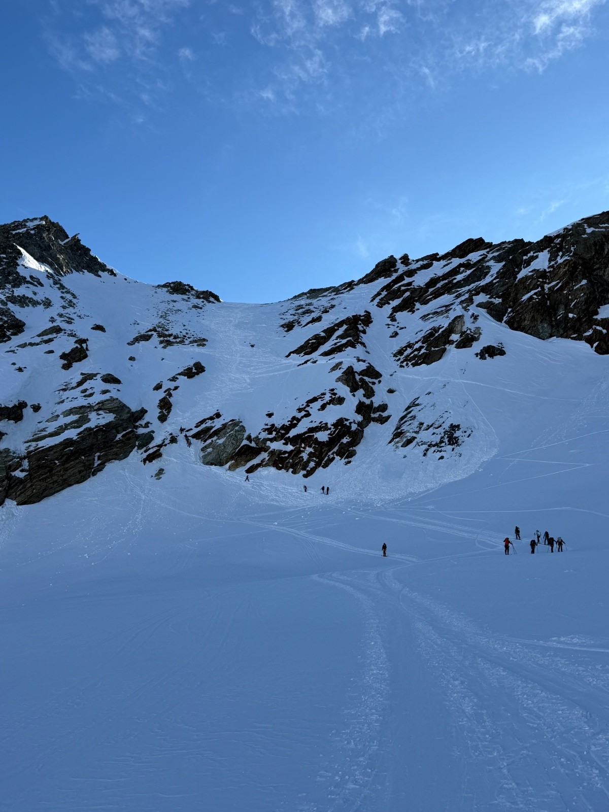 Samedi, après une première journée d’approche et deuxième journée d’échauffement, il fallait une course plus magistral pour marquer notre séjour. Sur les bons conseils de skieurs rencontrés au refuge, nous mettons cap sur le mont Blanc de Cheilon et décidons de l’enchaîner avec le pigne d’arolla. Sommet très esthétique. Accès via des pentes où nous slalomons entre les crevasses et sous les ceracs. Ambiance haute montagne garantie. Les très esthétiques arêtes sommitales et les environs se dégagent quelques minutes après notre arrivée au sommet. Cette fois ci, la providence semble avec nous. Descente dans une poudre durcie jusqu’au glacier en longeant la rimaye pour éviter les crevasses puis sur le glacier jusqu’à col de Cheilon (4*) . Descente dans la combe jusque sous la cabane des Dix en poudreuse protégée par le vent et encore globalement encore froide (5*). Longue remontée jusqu’au col de la Serpentine sous un soleil de plomb. Le dénivelé augmente et nous rappelle qu’enchaîner des courses à +2500 de D+ se fait mieux en Belledonne que dans des environnements haute montagne. Passé le col de la serpentine, les watts manquent, les arrêts se font plus fréquents et le cardio remonte rapidement. Il ne reste plus grand-chose pour atteindre le sommeil mais il faut s’employer sérieusement pour venir à bout du faux plat final.
