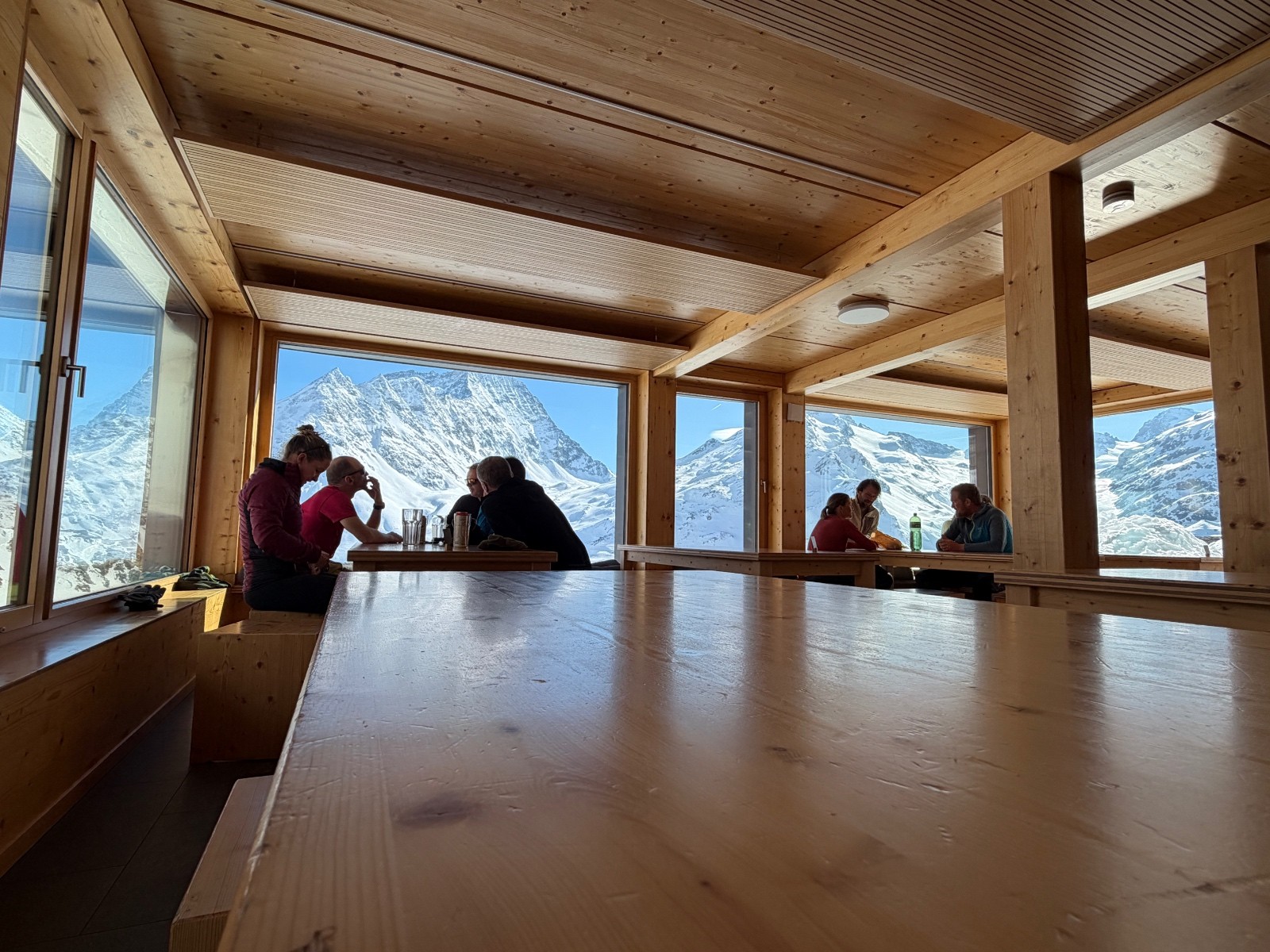 Nous atteignons le Pigne d’Arolla un peu avant 16h : nous sommes seul, pas un nuage à l’horizon et vent globalement faible. Moments magiques pour la seconde fois de la journée. Il a fallu s’employer ! La providence est bien avec nous. Descente sans histoire et globalement directe à la cabane de Vignettes. Cabane 3* (4 si la capacité aurait été moindre / 100 places)