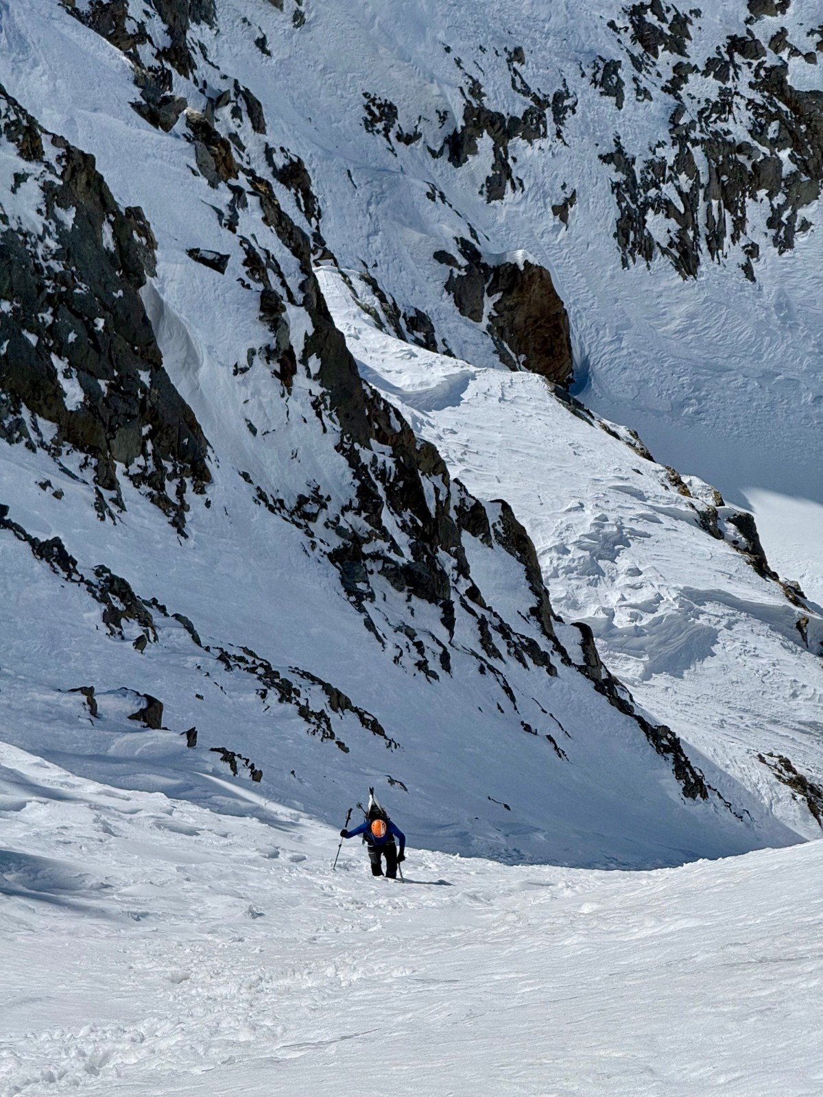 Conditions pour le ski : C'est plus poudre , bien trafollé par le vent du début de semaine et la moquette ne dure pas donc assez moyen ! Neige dure à la montée avec bon regel dans les Erps. Neige transfo épaisse dans les pentes E et NE italiennes. Gros sel regelé en surface dans le couloir de l'Agnel. Transfo épaisse puis lourde sur la VN de l'Agnel. 1 déchaussage court après la passerelle puis skis au pied en prenant main gauche sous les couloirs de Juisse. Les pistes de fond passent encore mais déneigement probable bientôt.