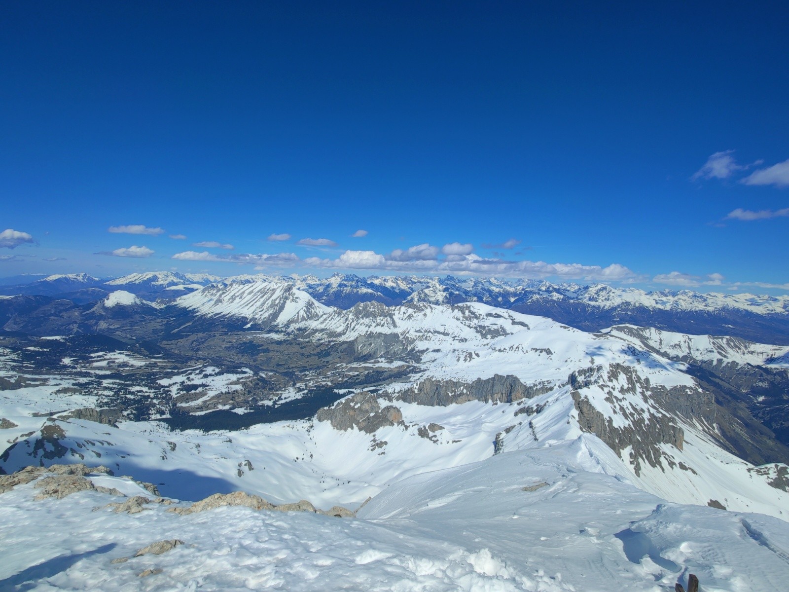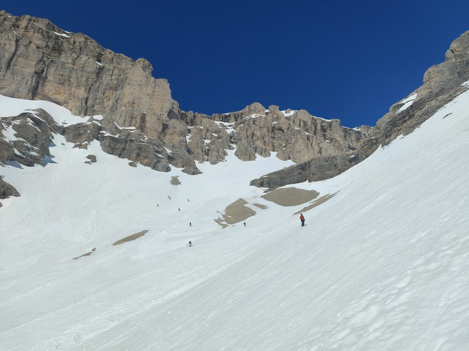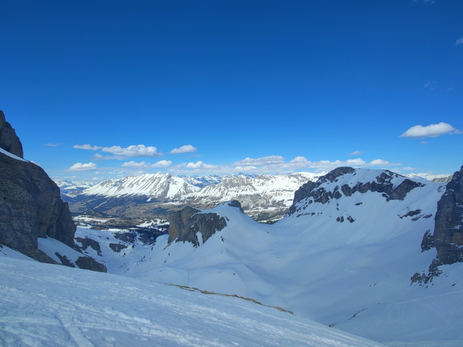 Conditions pour le ski : Très bon regel, neige dure jusque vers 10h, s'humidifiant doucement après. Reste dure en face nord. Côté sud après midi, moquette a poil long dans les faces ayant vues le soleil depuis un moment, pas mal dans celles qui étaient a l'ombre des falaises. Neige cartonnées sur le plateau de Bure. Chourum héroïque bien rempli, pas une pierre qui dépasse, neige souple et belles marches