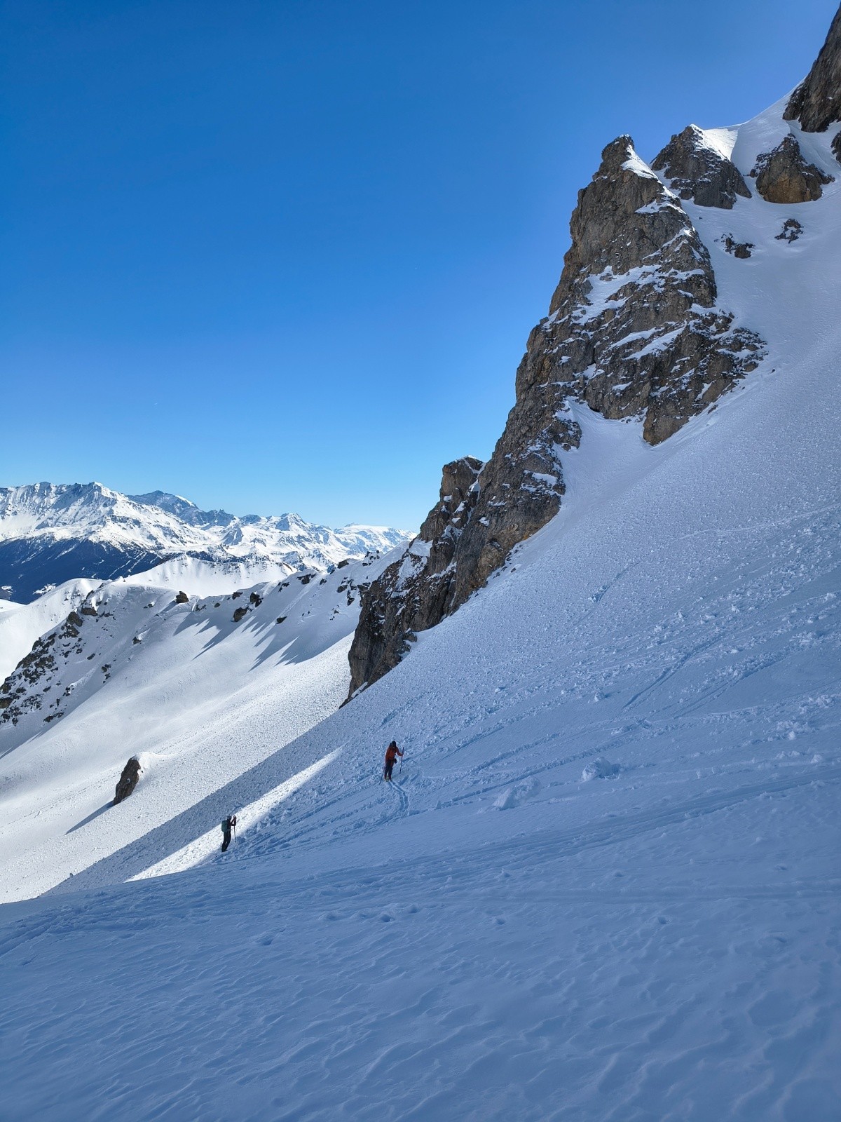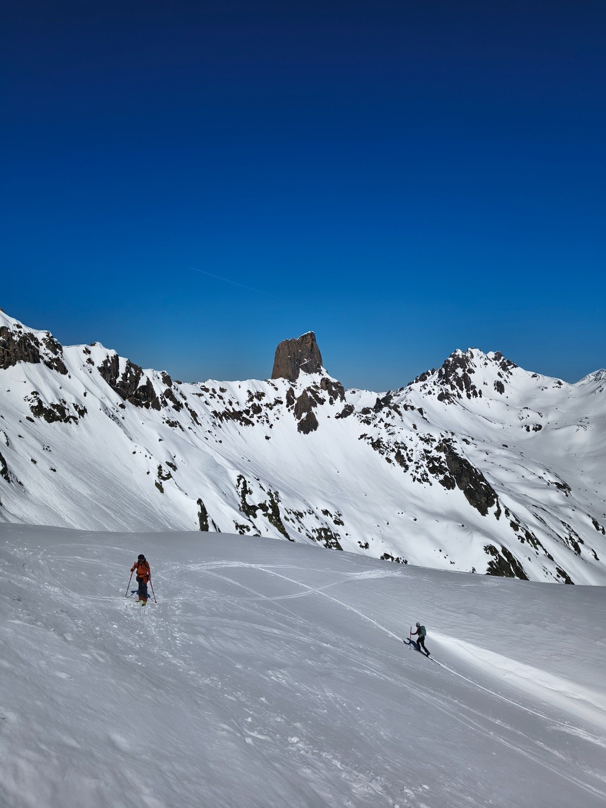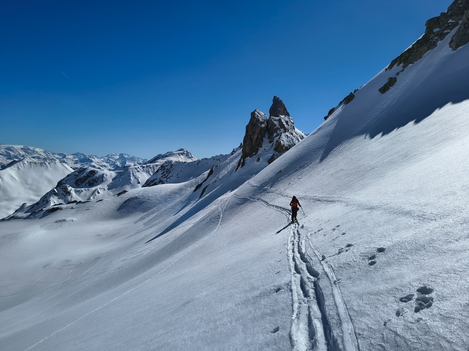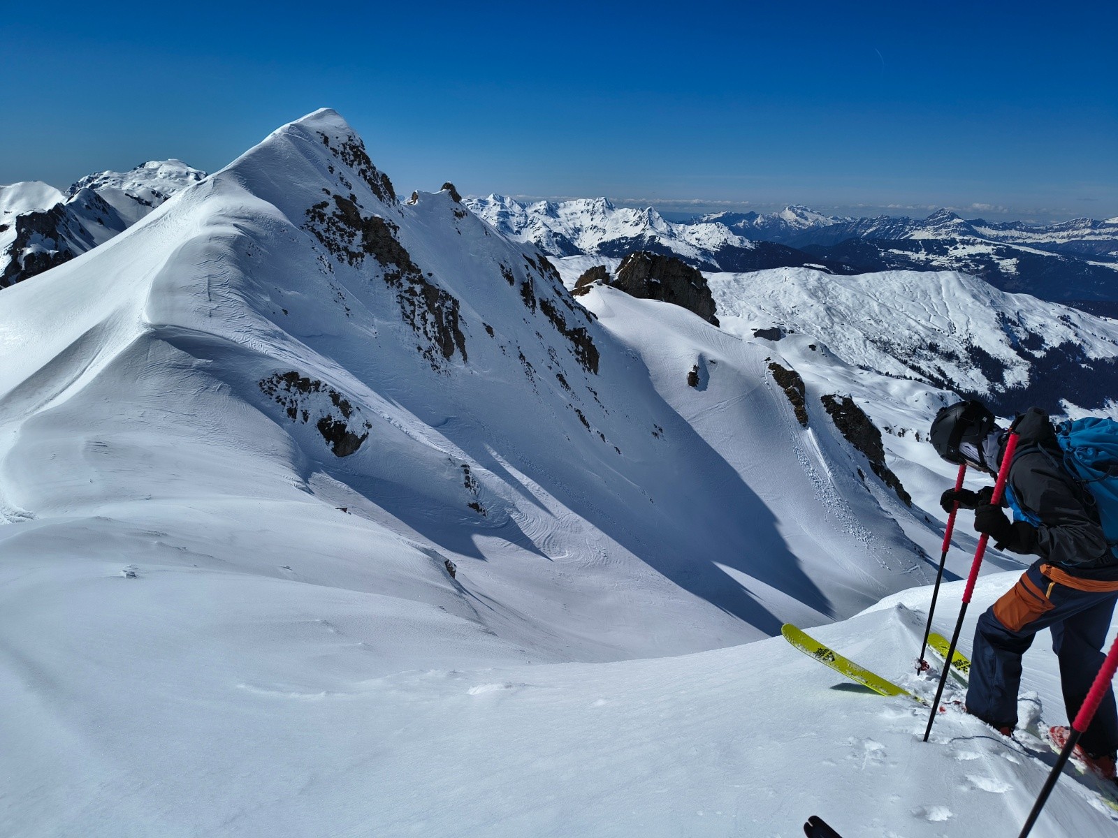 Conditions pour le ski : excellent (poudreuse) en N-NO, moquette collante en sud, moquette en train de regelé dans les passages à l'ombre après 16h