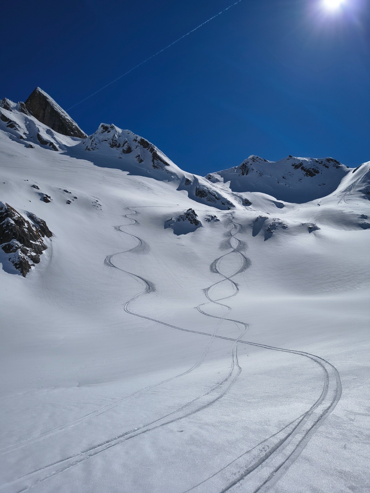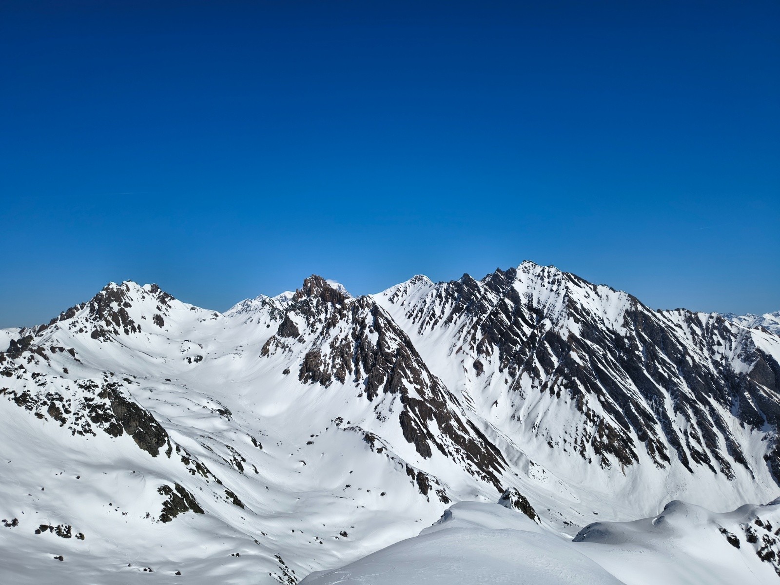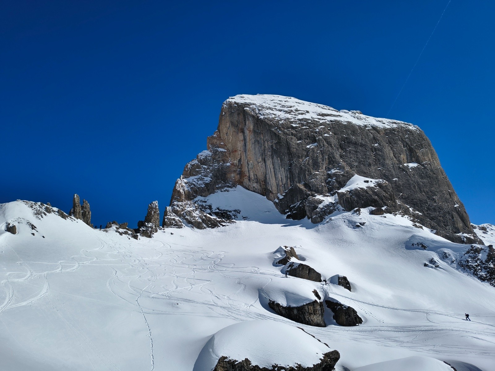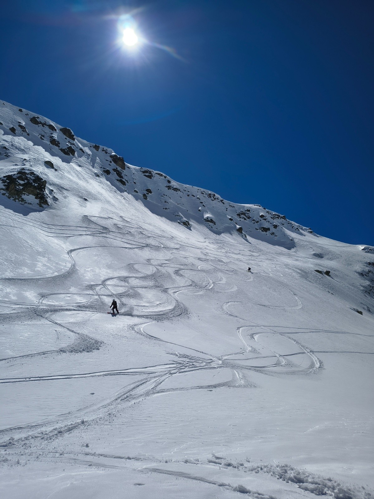Conditions pour le ski : excellent (poudreuse) en N-NO, moquette collante en sud, moquette en train de regelé dans les passages à l'ombre après 16h