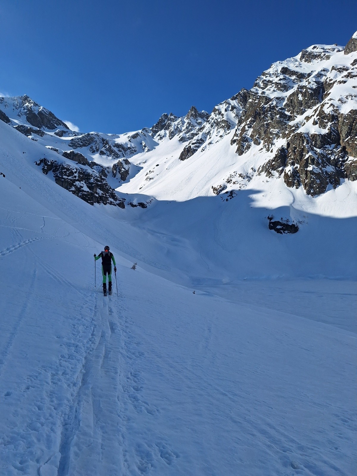 Pour la descente plein Nd, béton grippant puis croûte puis long final en soupe épaisse et lourde
