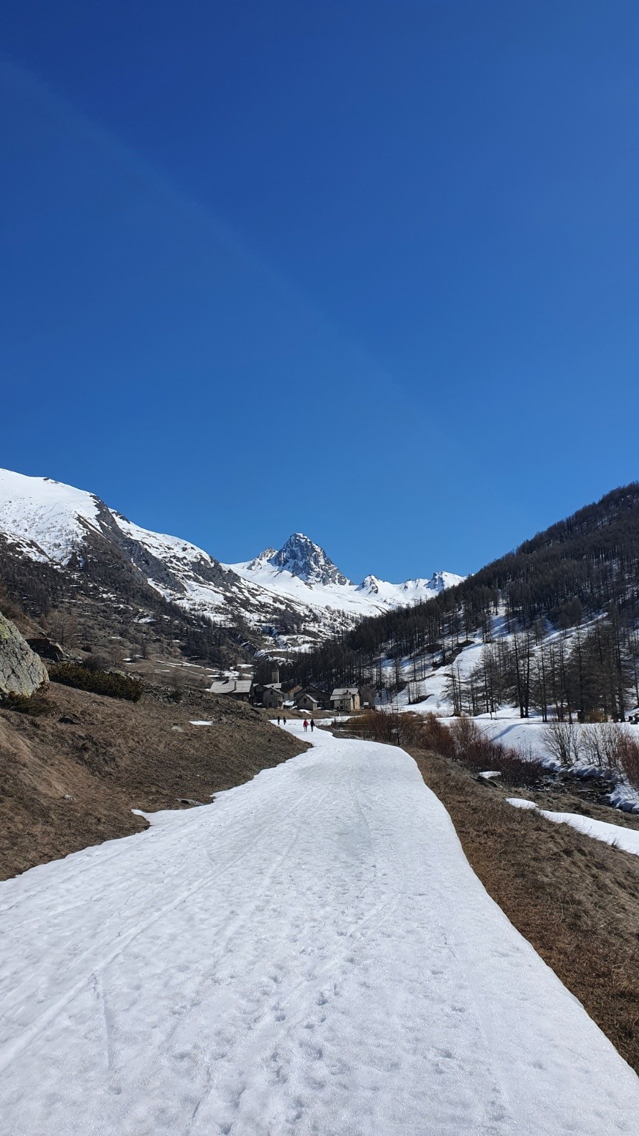 Altitude de chaussage/déchaussage : On est passés rive gauche du torrent sans déchausser au début et sur la route tout au long au retour. Mais pas mal de déchaussage jusqu'a Valpréveyre (chaussage définitif)