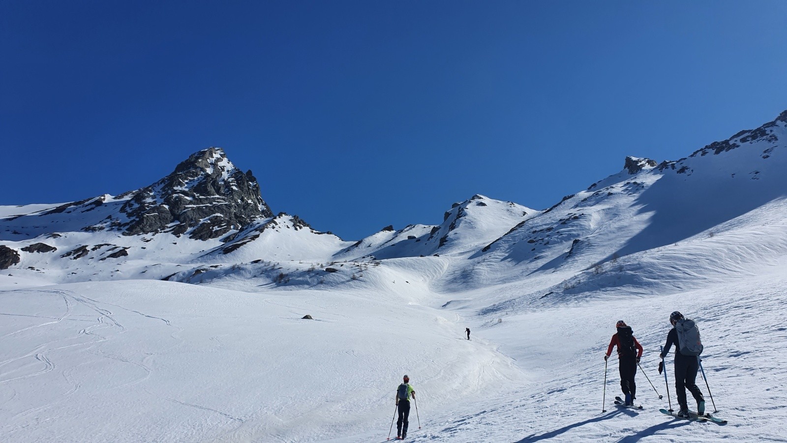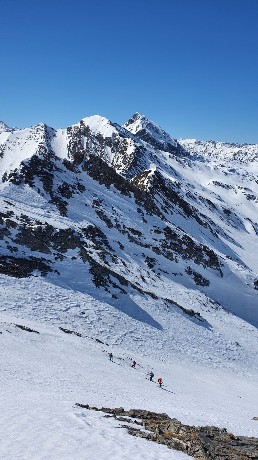 Conditions pour le ski : Vent qui a empêché le bon decaillage au sommet (point 2672 au S du col de Bouchet), mais bonne moquette ensuite jusqu'à 2200m. Ensuite un peu trop mou si on fait plus que 65kg 😅.