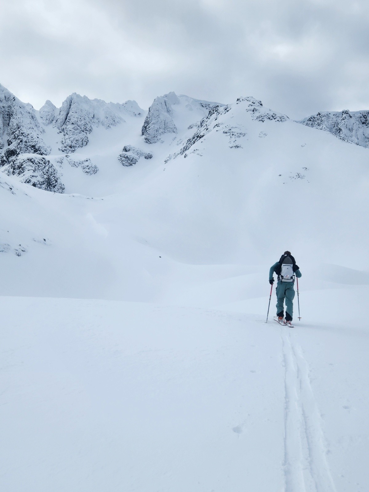 Itinéraire suivi : topo en montant, puis retour ski sur le sac , 8 km pour rejoindre le bus