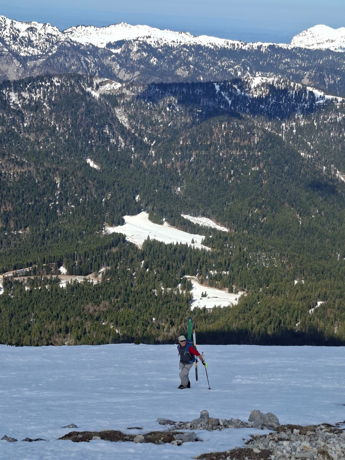 Conditions pour le ski : hum… comment dire… perfectible. Regel très faible voire absent, et même humidification en profondeur aux alentours de la Folatière. Pour une fois, le meilleur fut la croupe sommitale. Pour le bas, viser les zones les plus fréquentées pour avoir de la neige la plus tassée possible.