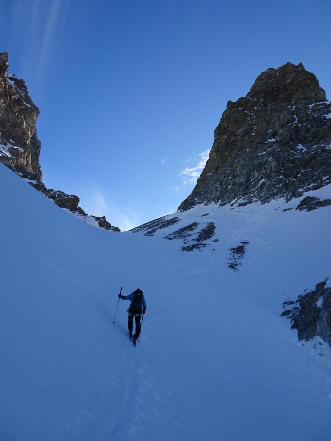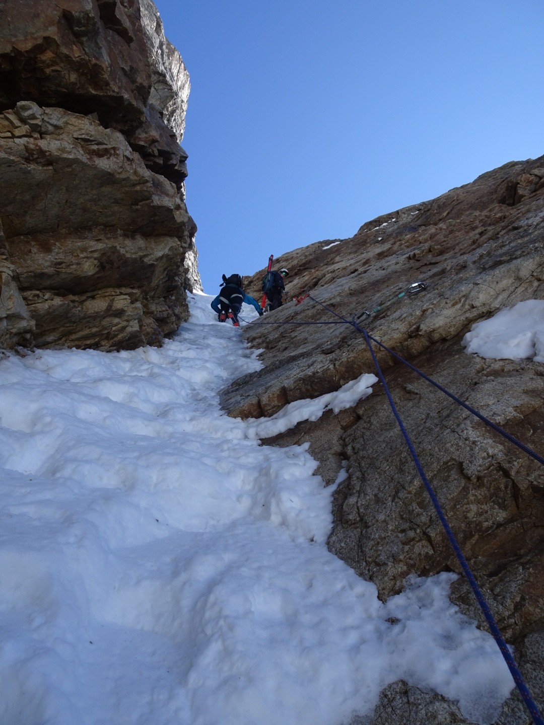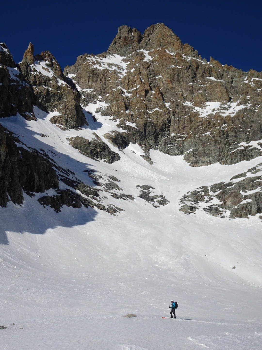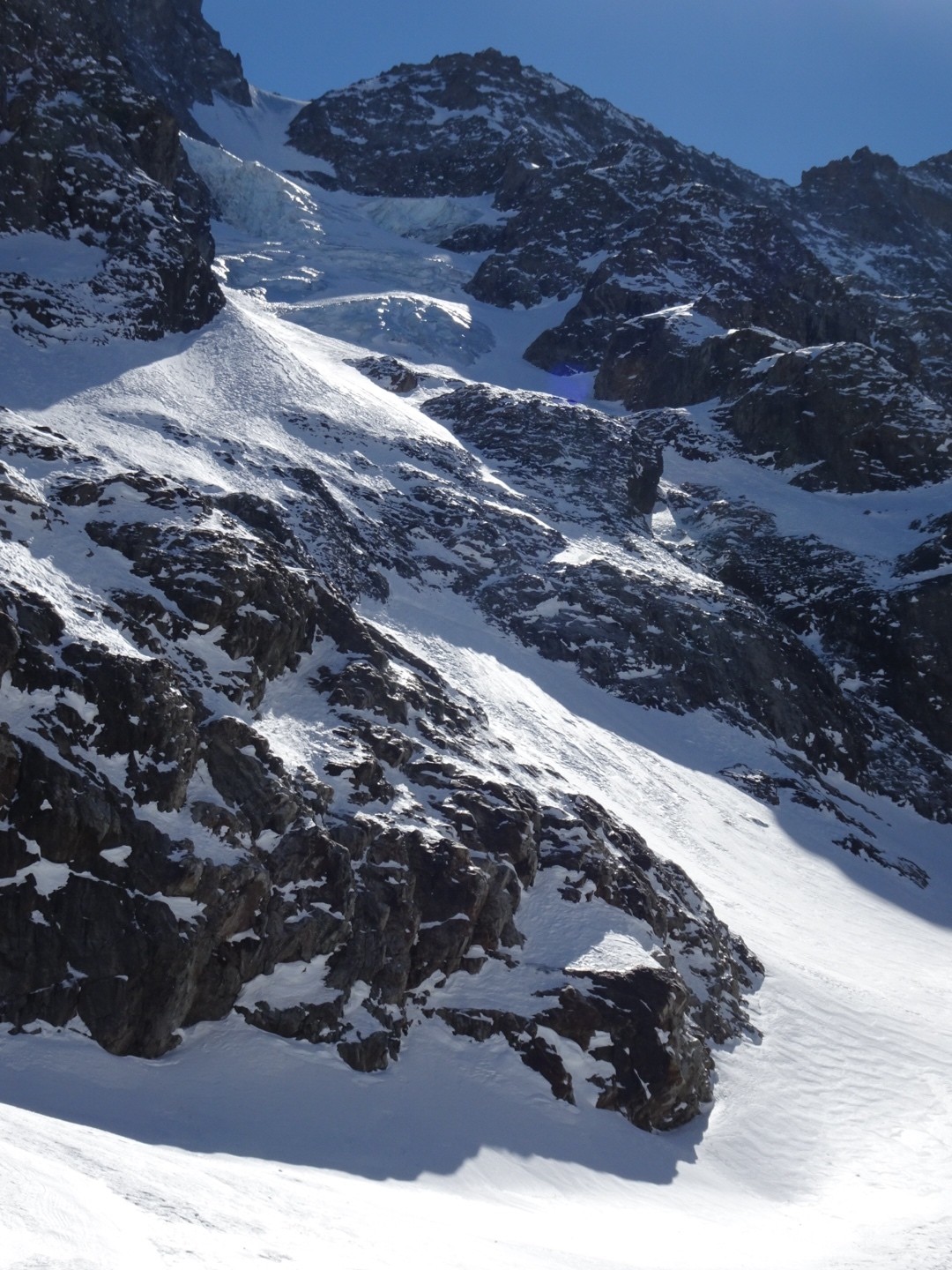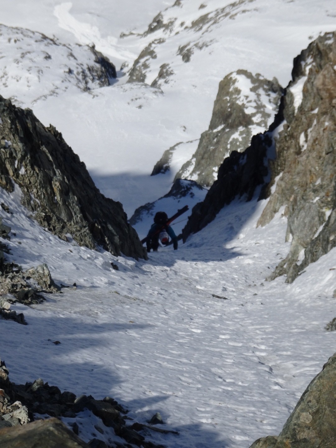 - couloir Nord Roche Faurio: désescalade 150m pas cool en neige dure (prendre deux piolets), puis neige froide compacte agréable toujours quelques reliefs