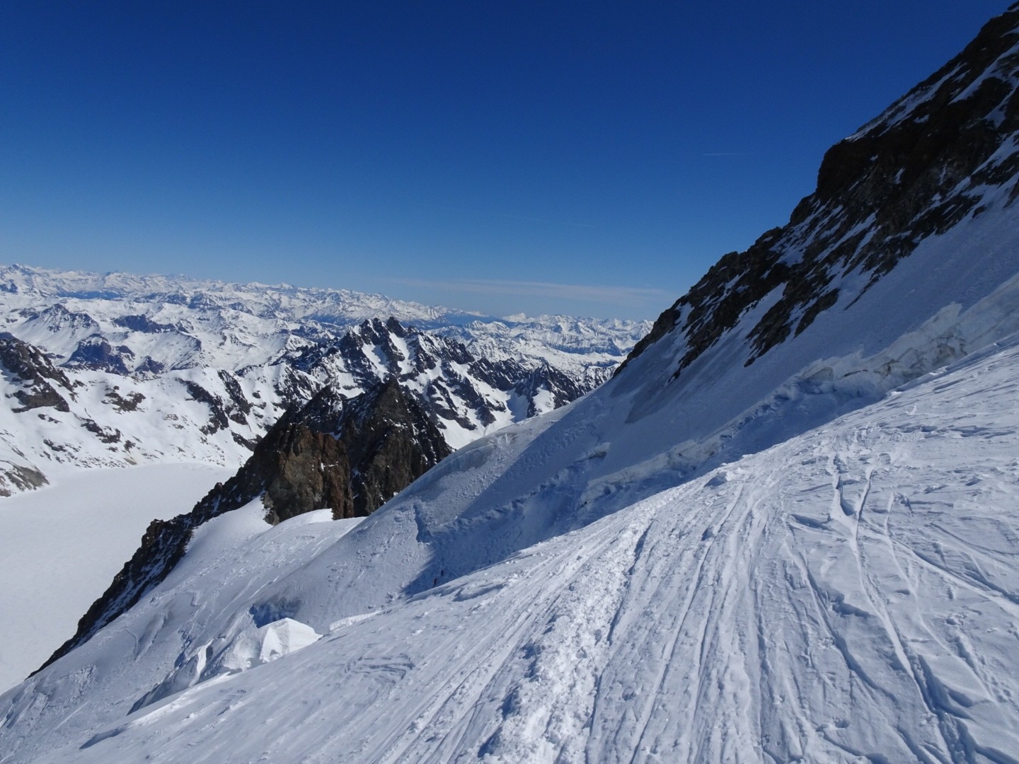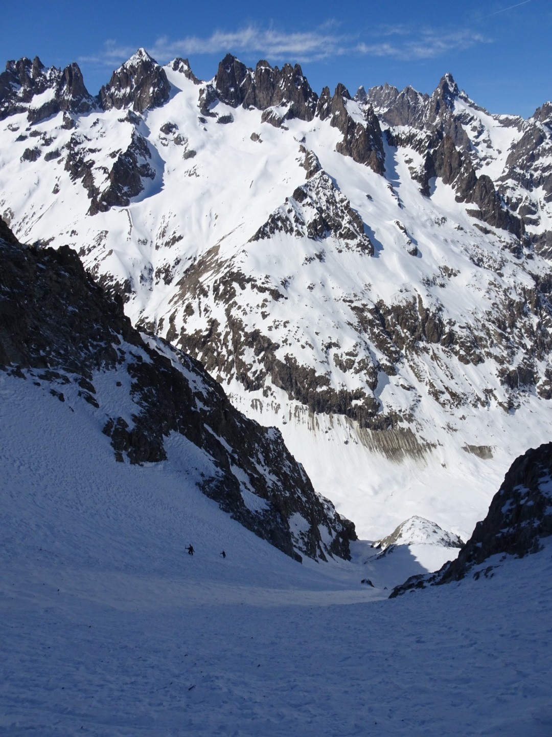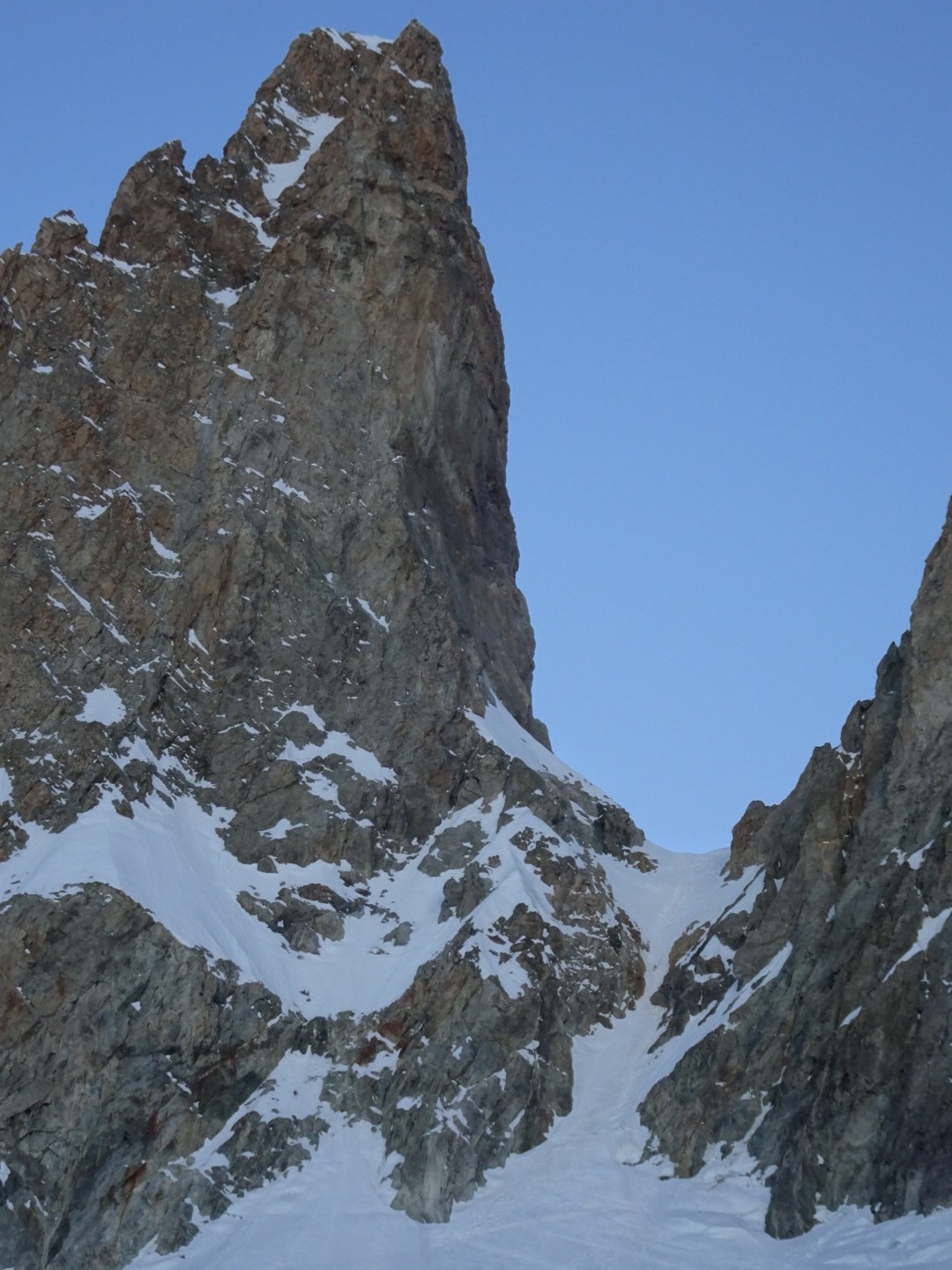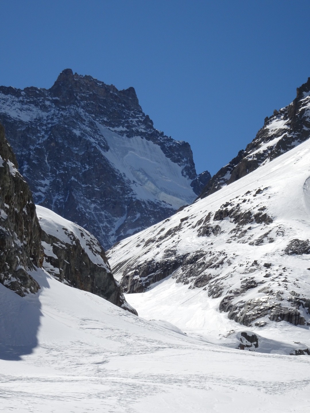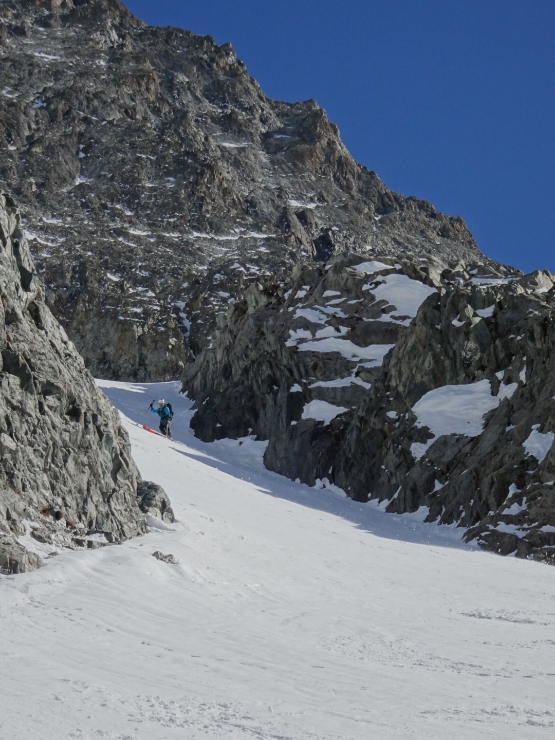 - couloir Nord Roche Faurio: désescalade 150m pas cool en neige dure (prendre deux piolets), puis neige froide compacte agréable toujours quelques reliefs