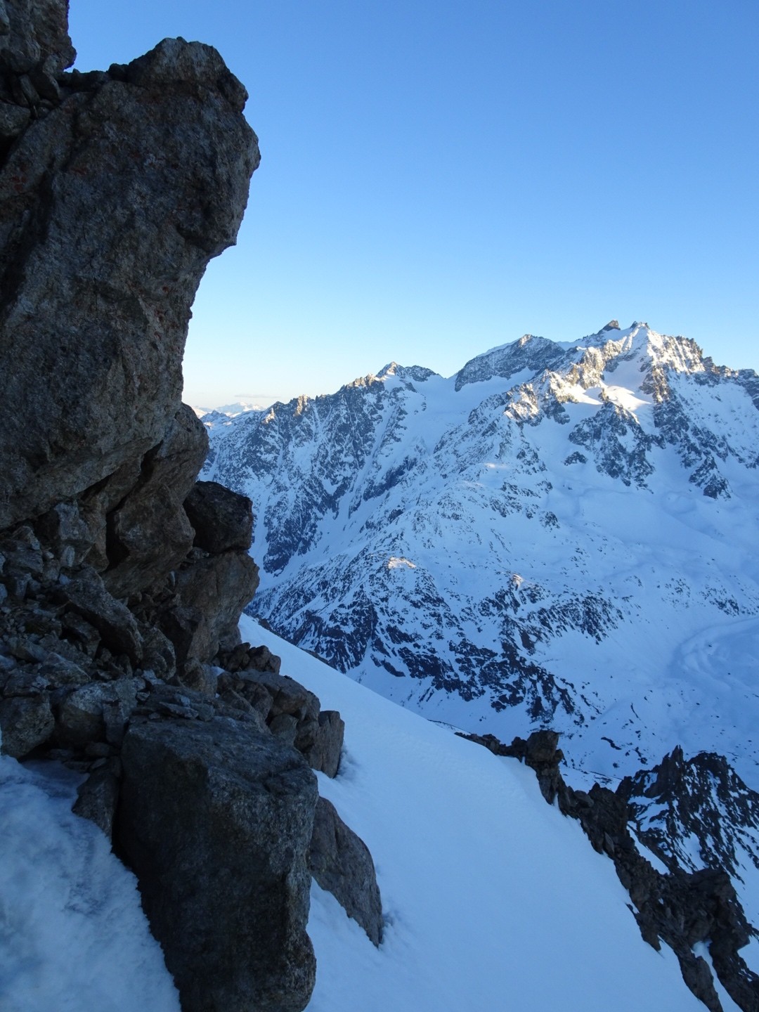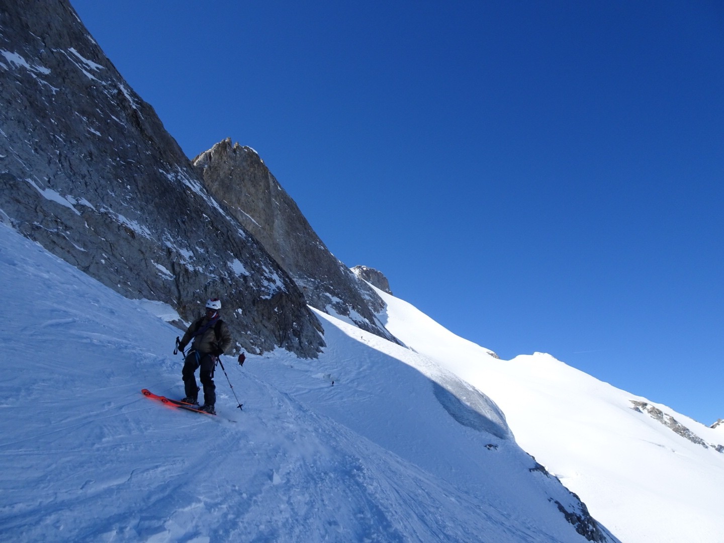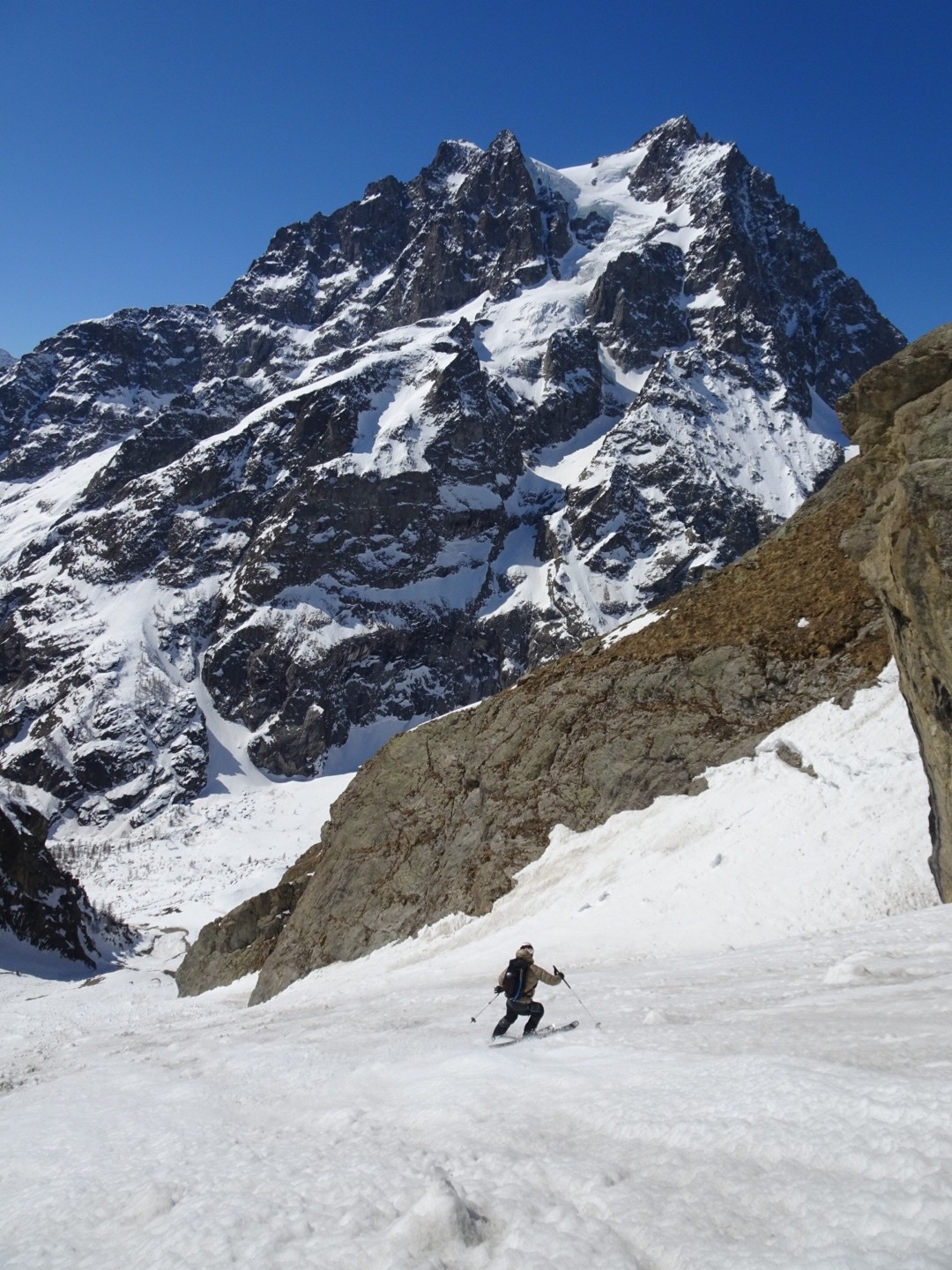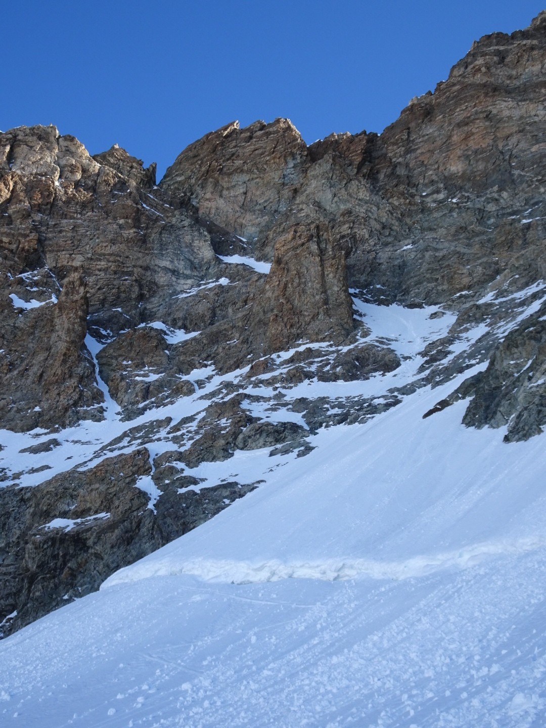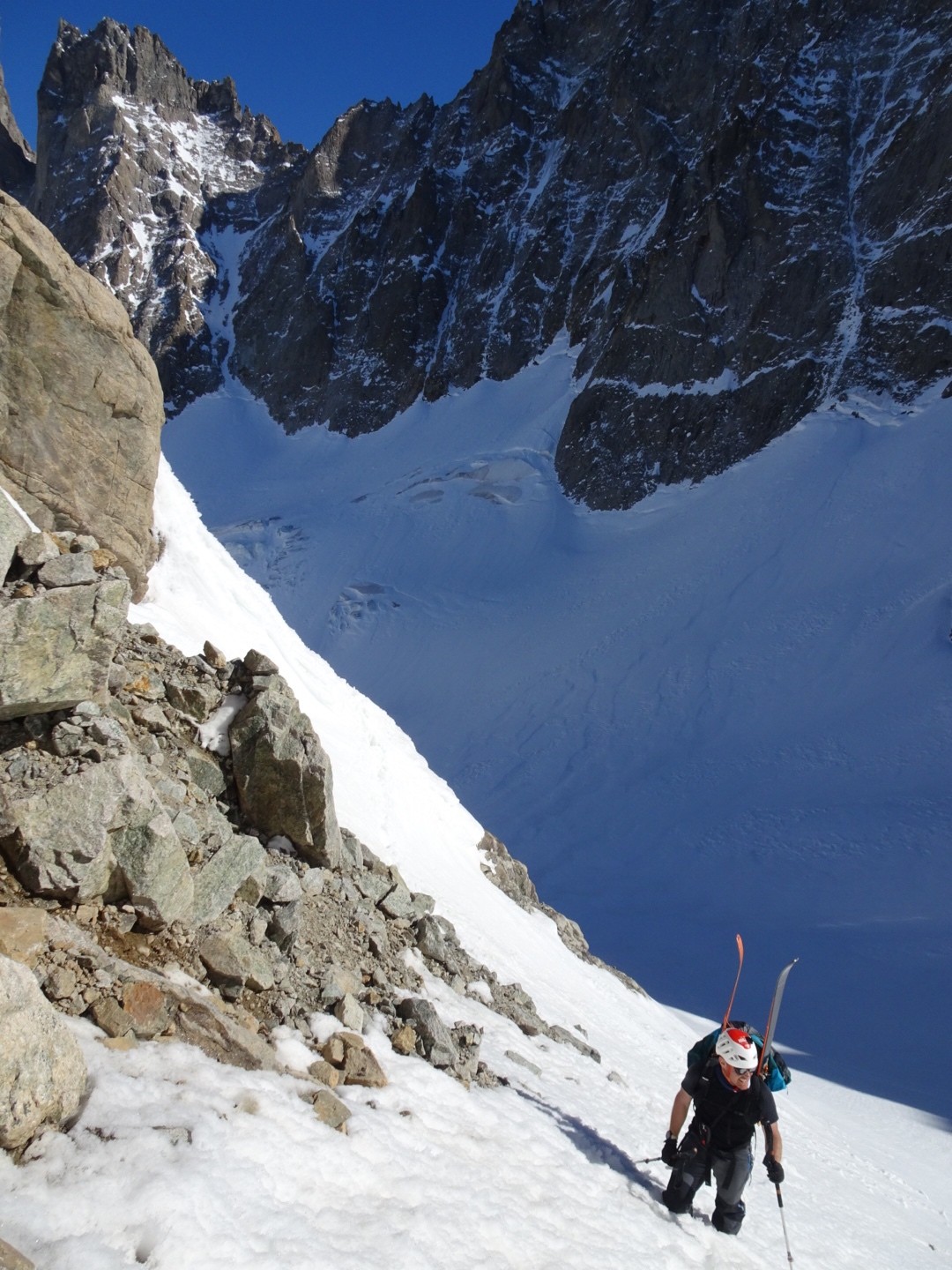 - couloir Nord Roche Faurio: désescalade 150m pas cool en neige dure (prendre deux piolets), puis neige froide compacte agréable toujours quelques reliefs