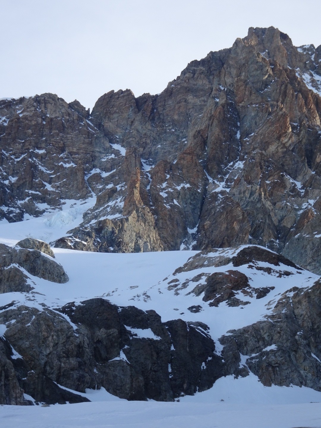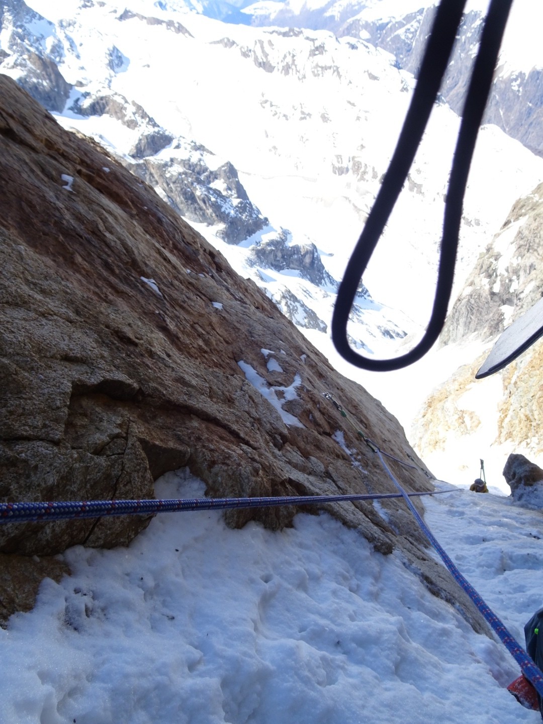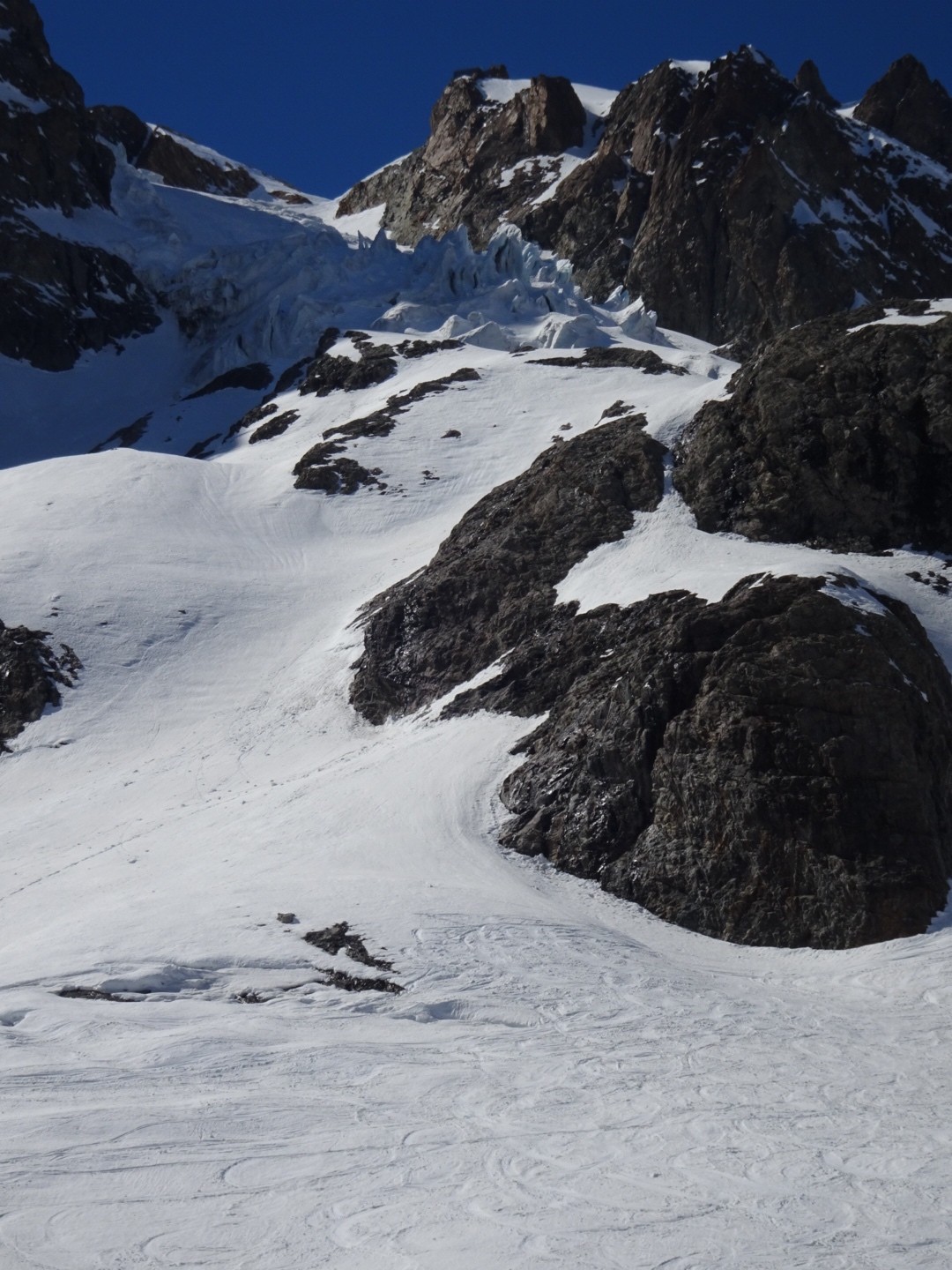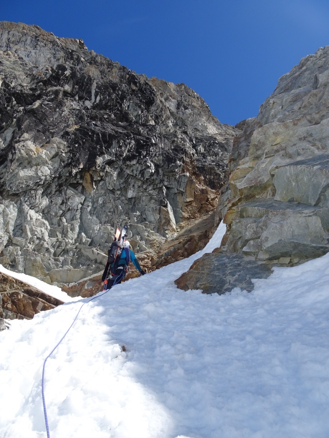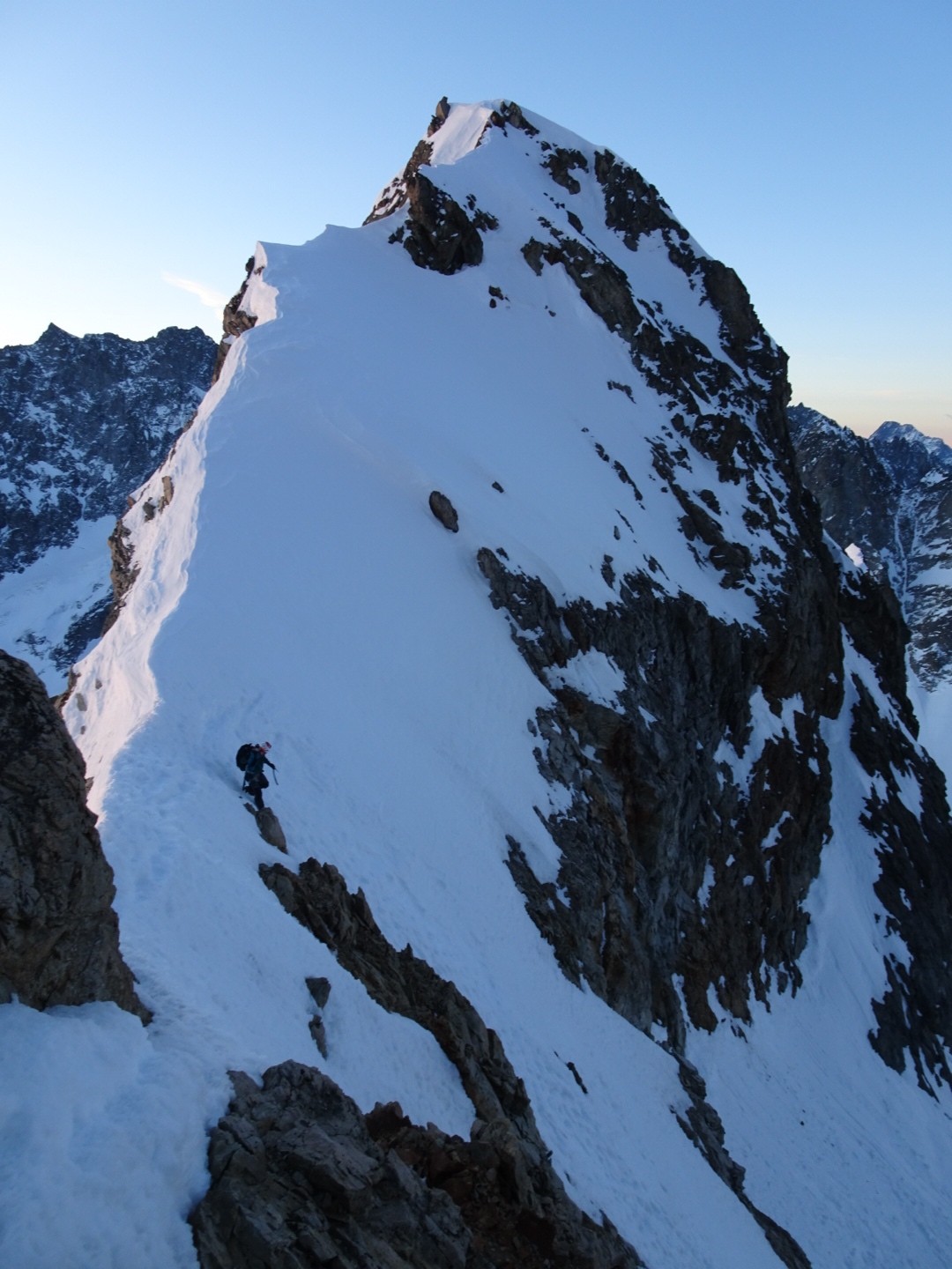 - couloir Nord Roche Faurio: désescalade 150m pas cool en neige dure (prendre deux piolets), puis neige froide compacte agréable toujours quelques reliefs