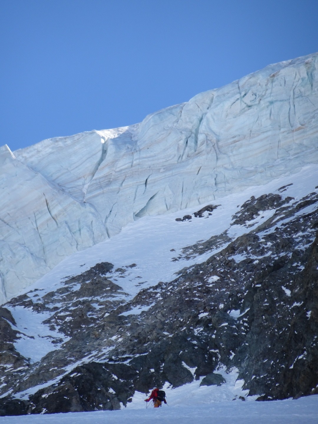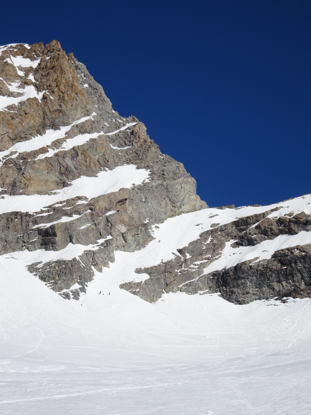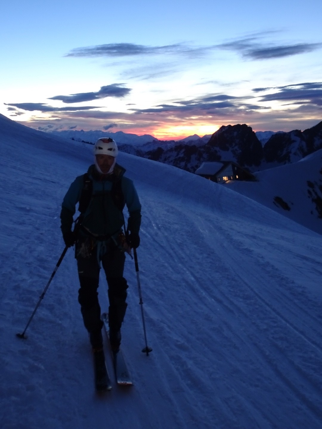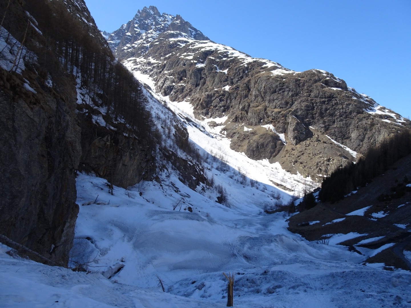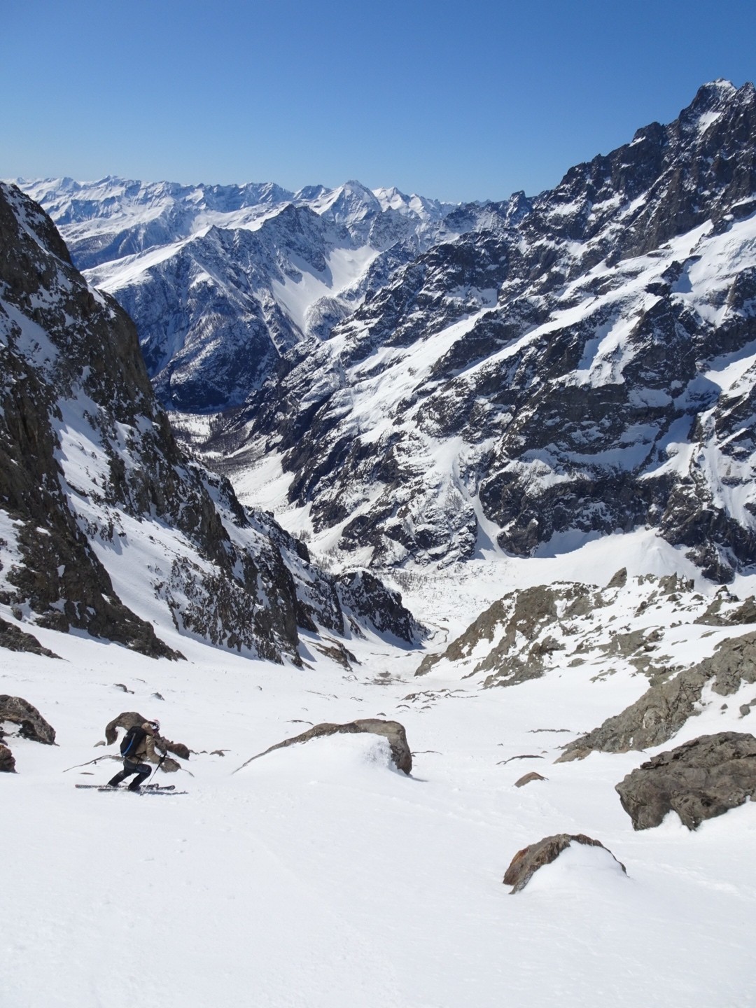 - couloir Nord Roche Faurio: désescalade 150m pas cool en neige dure (prendre deux piolets), puis neige froide compacte agréable toujours quelques reliefs