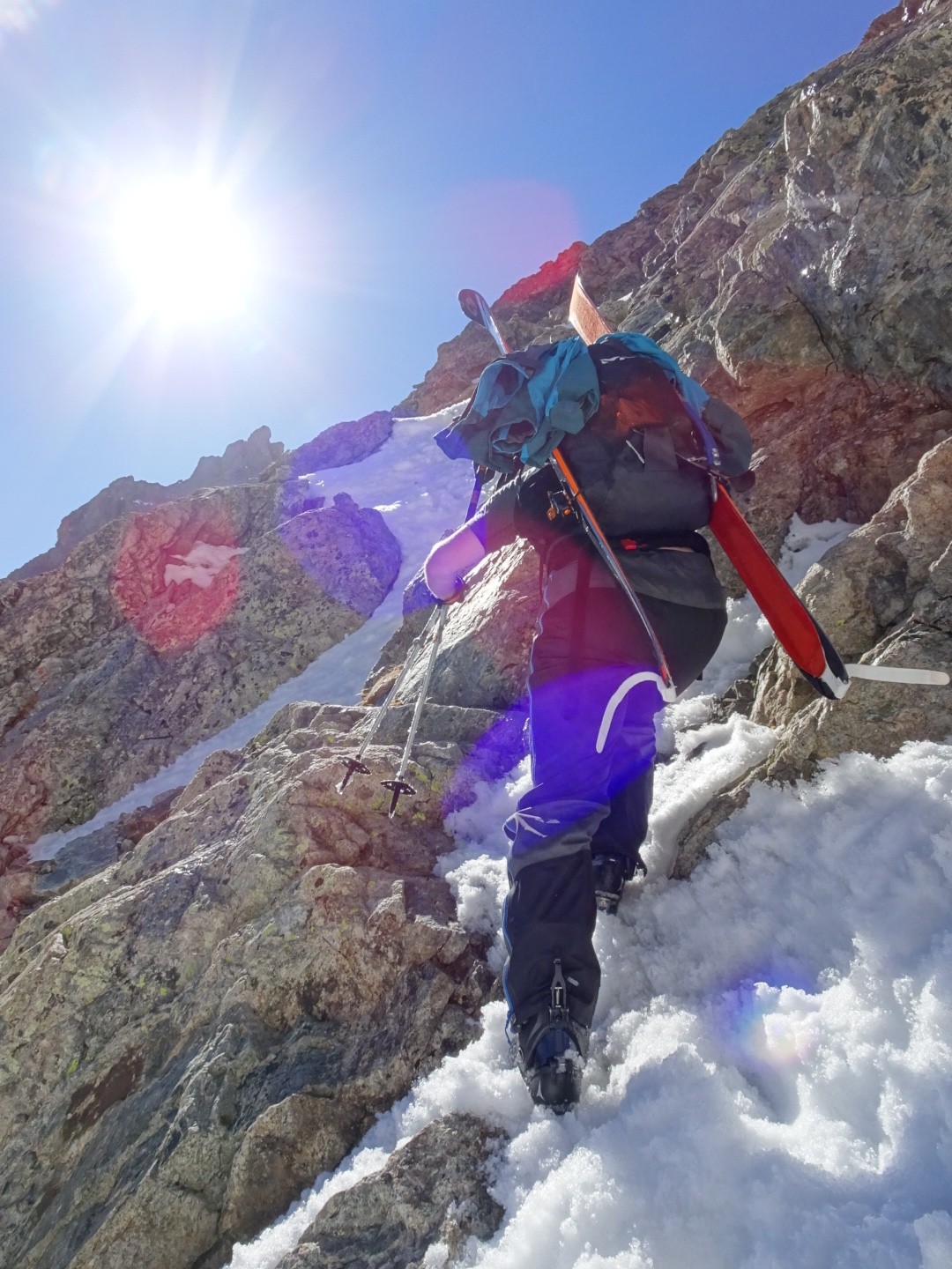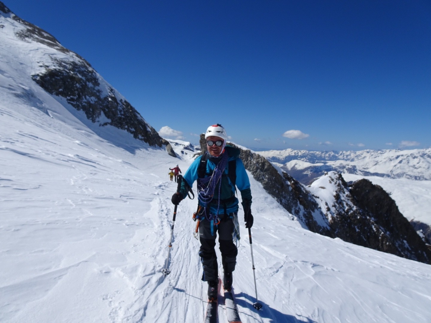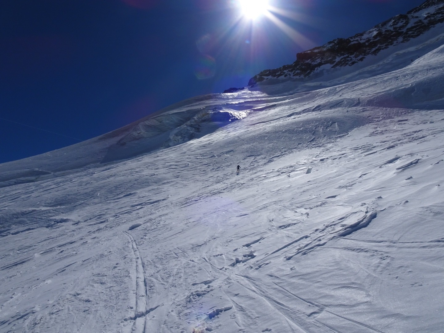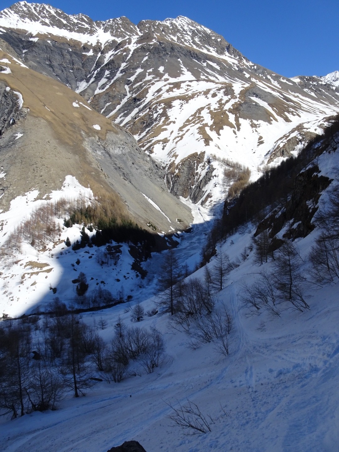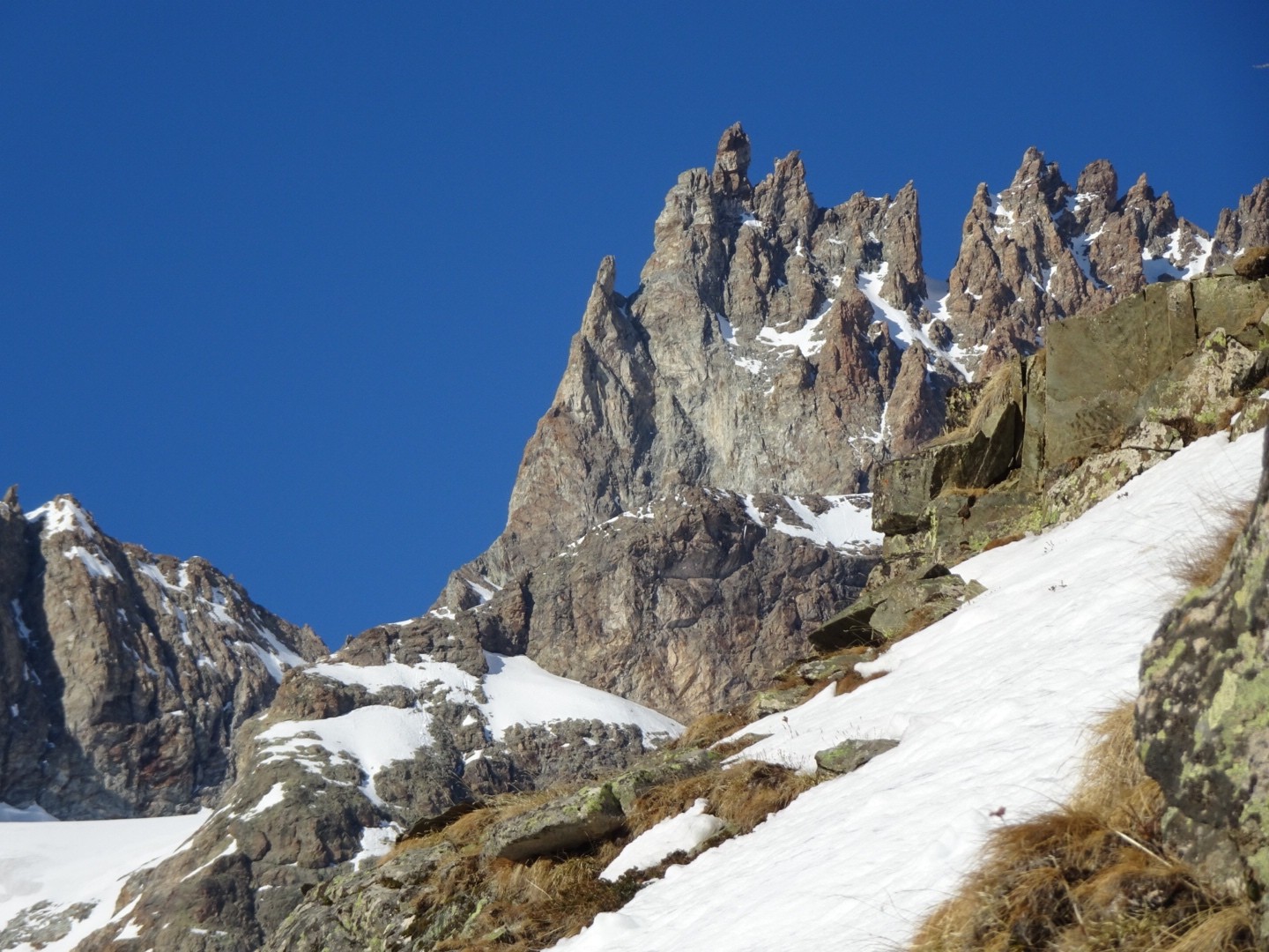 - couloir Nord Roche Faurio: désescalade 150m pas cool en neige dure (prendre deux piolets), puis neige froide compacte agréable toujours quelques reliefs