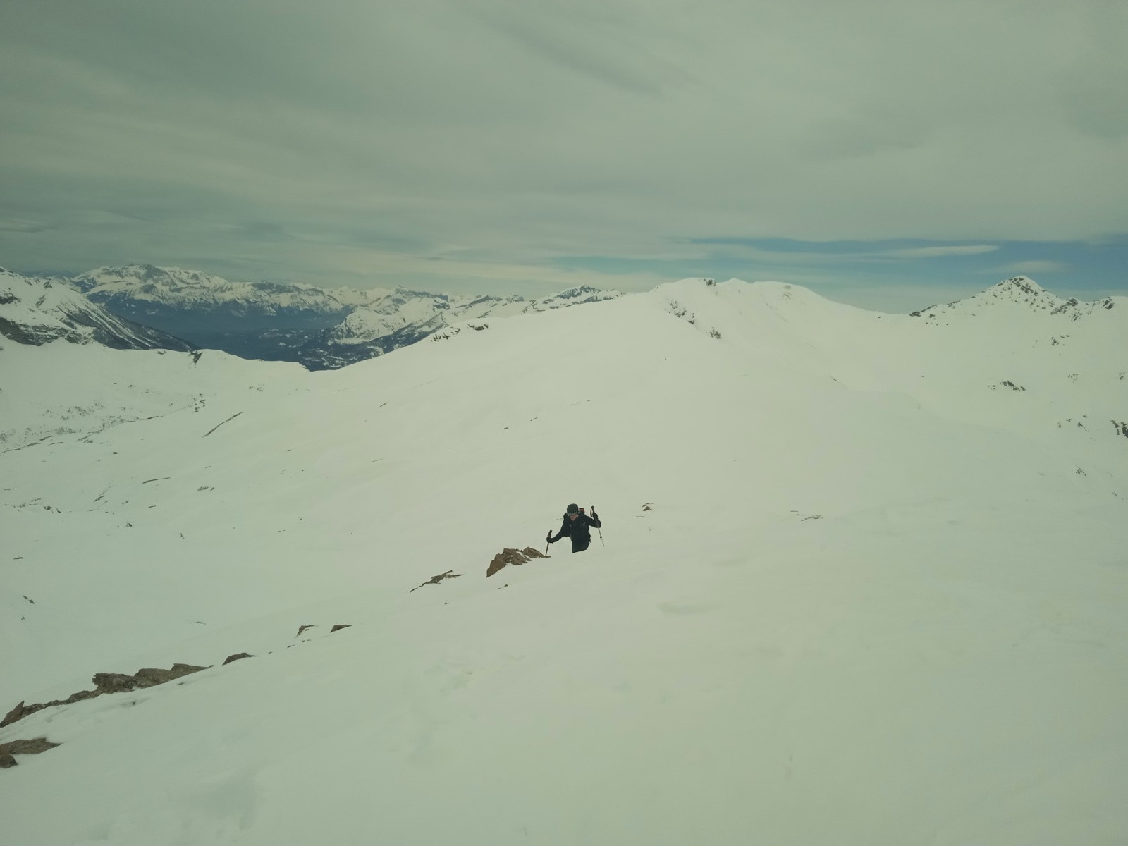 Conditions pour le ski : heu.. on va pas se mentir, c'est bof! horrible même J1 depuis Roc Blanc (croutée et sans voir le relief...) La montée en J2 vers l'entre-piniers laisse penser que ça aurait été bon en nord. Le sud depuis l'entre-pinier est pas si pire (une fois que ce n'est plus crouté)