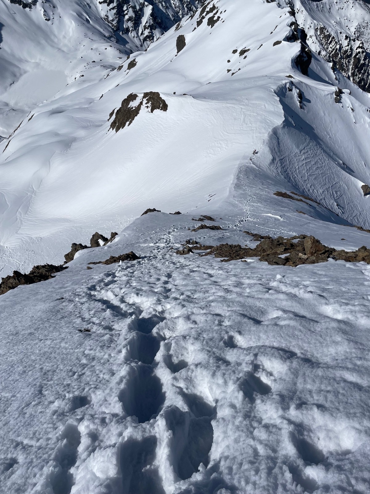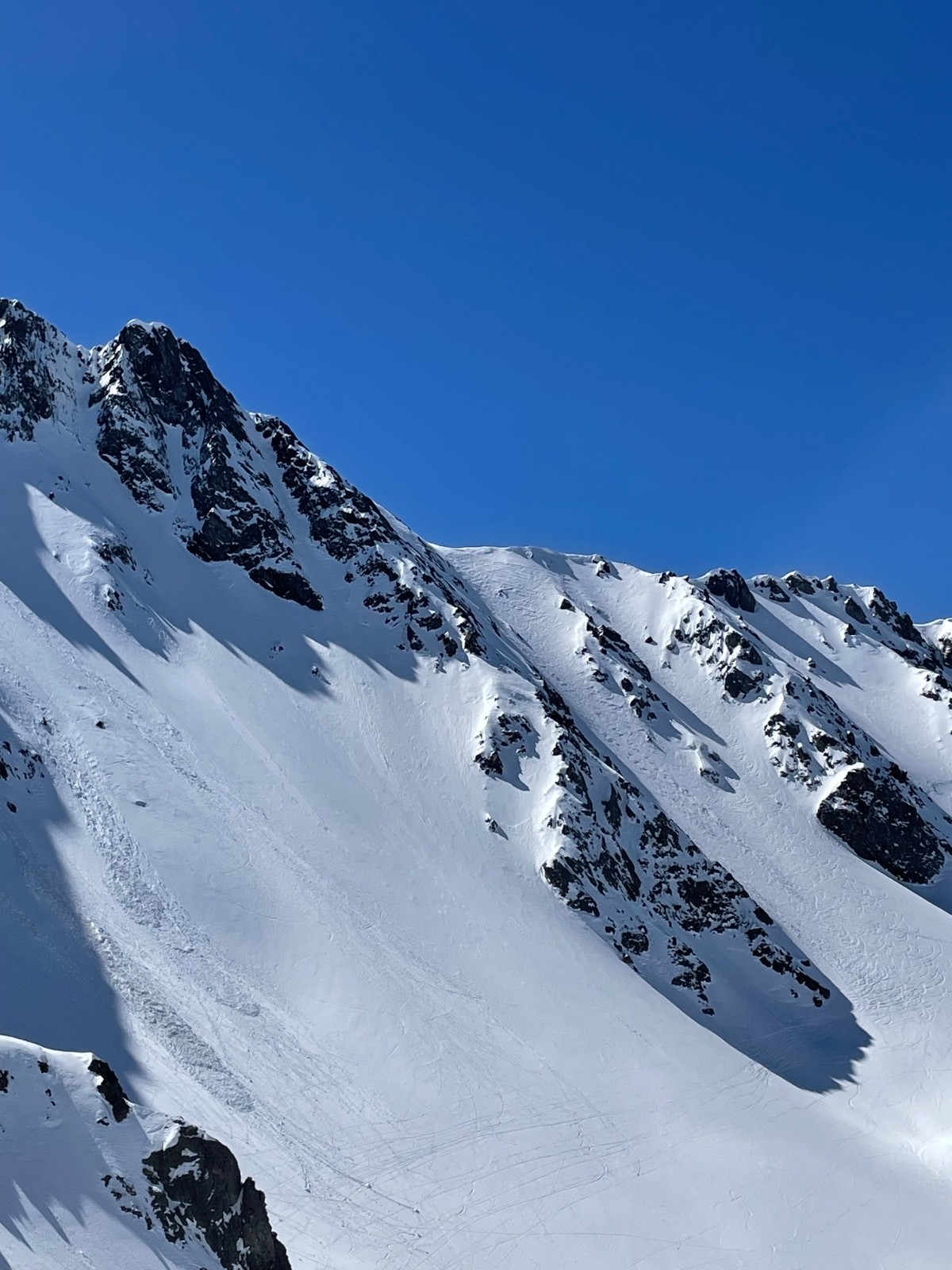 Conditions nivo et activité avalancheuse : beaucoup de coulées du au réchauffement en face est, mieux vaut y aller tôt le matin et passer dans s’est dur.