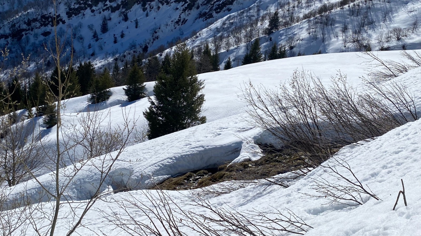 Après la fraîcheur du départ, on retire plusieurs couches de fringues et la neige dure du début fait place à une neige qui décaille puis qui ramollit rapidement !