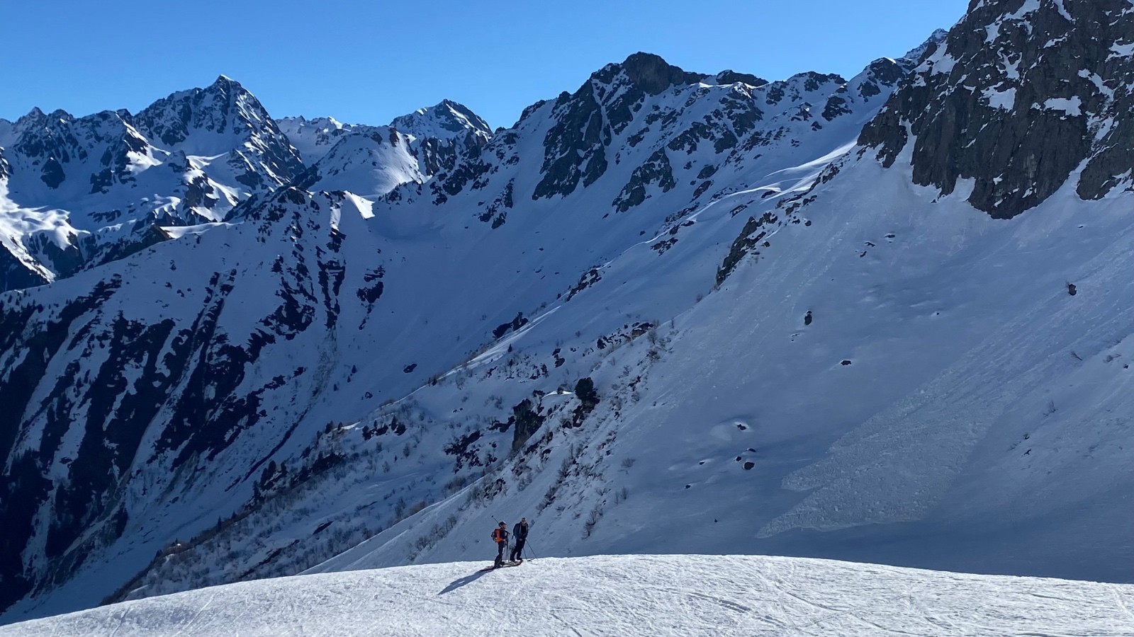 Un peu de monde un peu partout dans ces Vallons, lieu magnifique qui garde la neige si longtemps ! Ses grandes classiques : col de l’Evéque Dent du Pra Cime de la Jasse et ses couloirs…
