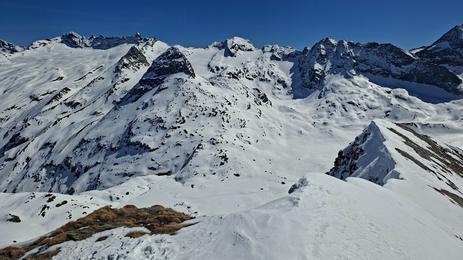 Conditions nivo et activité avalancheuse : quelques petites coulées au soleil, partant des rochers. Anciennes coulées plus imposantes depuis les pointes des Arpettes.