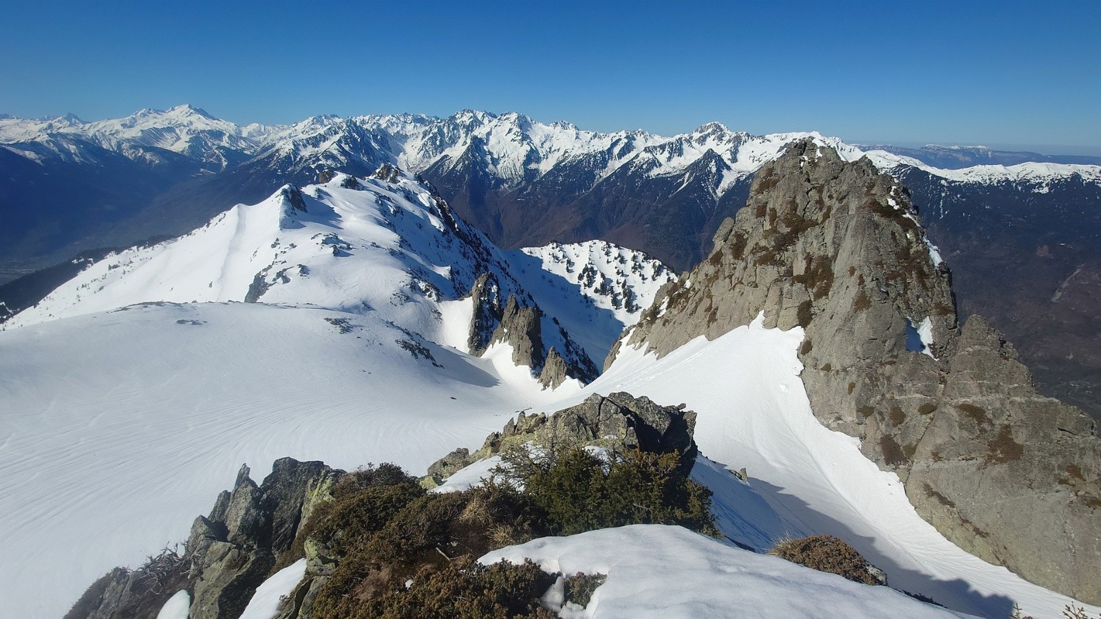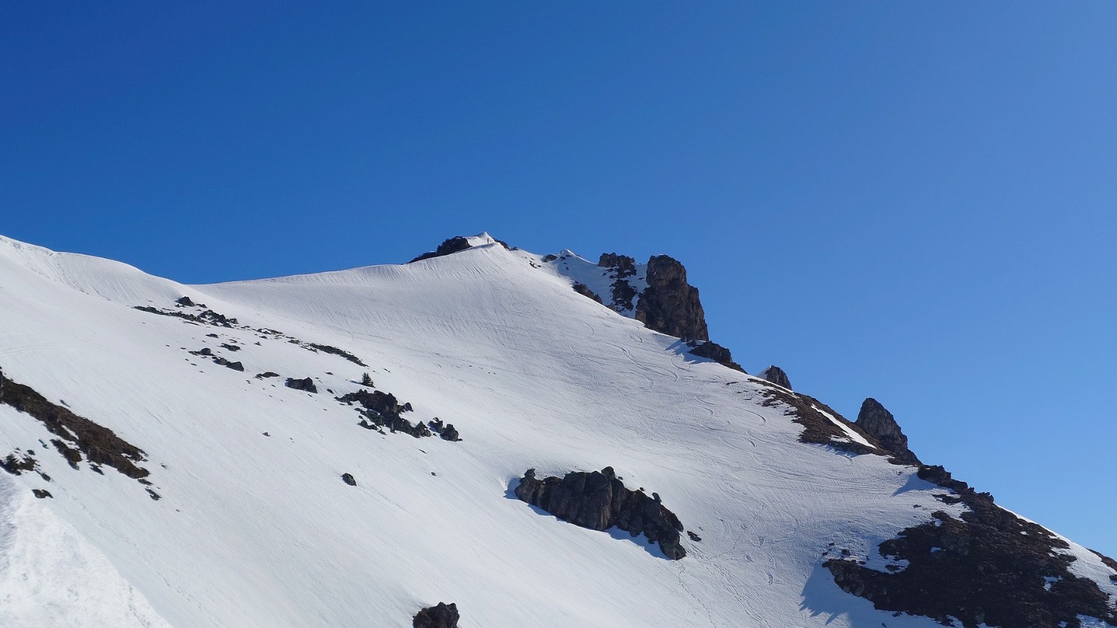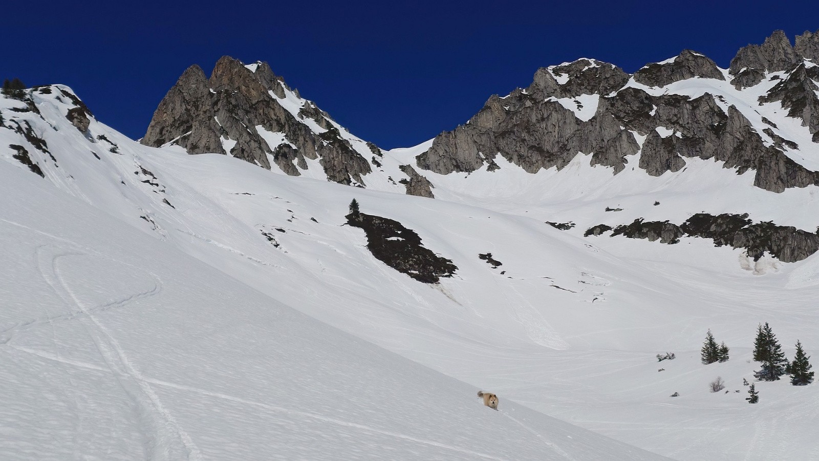 La neige est dure, molle, lisse, gelée, pourrie, profonde, tracée, croutée, zipante, collante. On ne sait plus trop. Pas folle en tous cas. Sauf en haut, deux fois 150m de moquette indécente sur la bonne pente à la bonne heure.