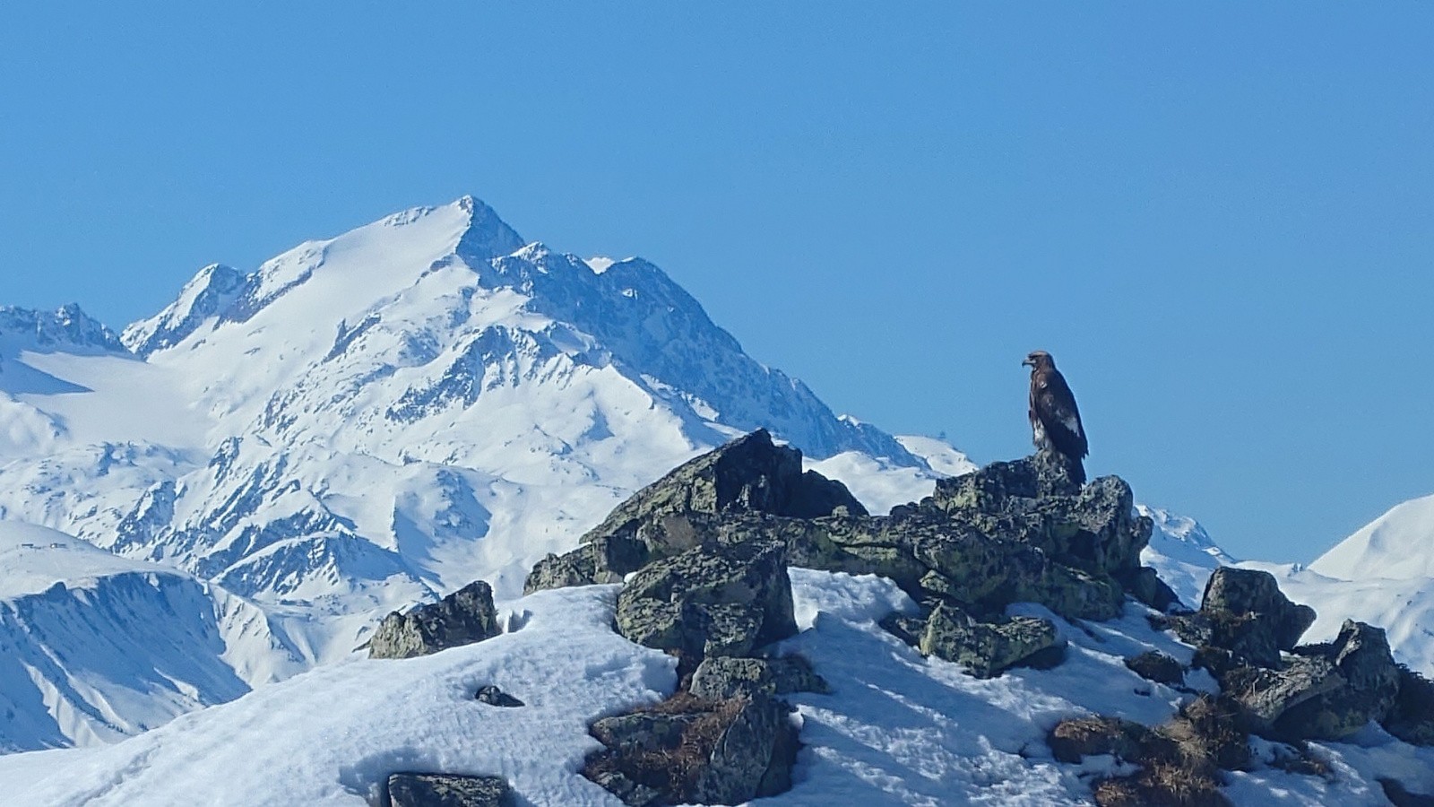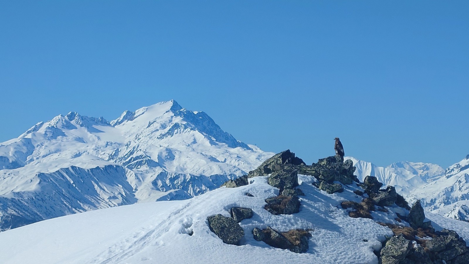 L'aigle s'envole. Deux petits pas, il déploie la grand-voile, saute, et se laisse glisser sur un invisible courant d'air sans donner un seul coup d'aile. Je le perds de vue en direction du col de la Madeleine.