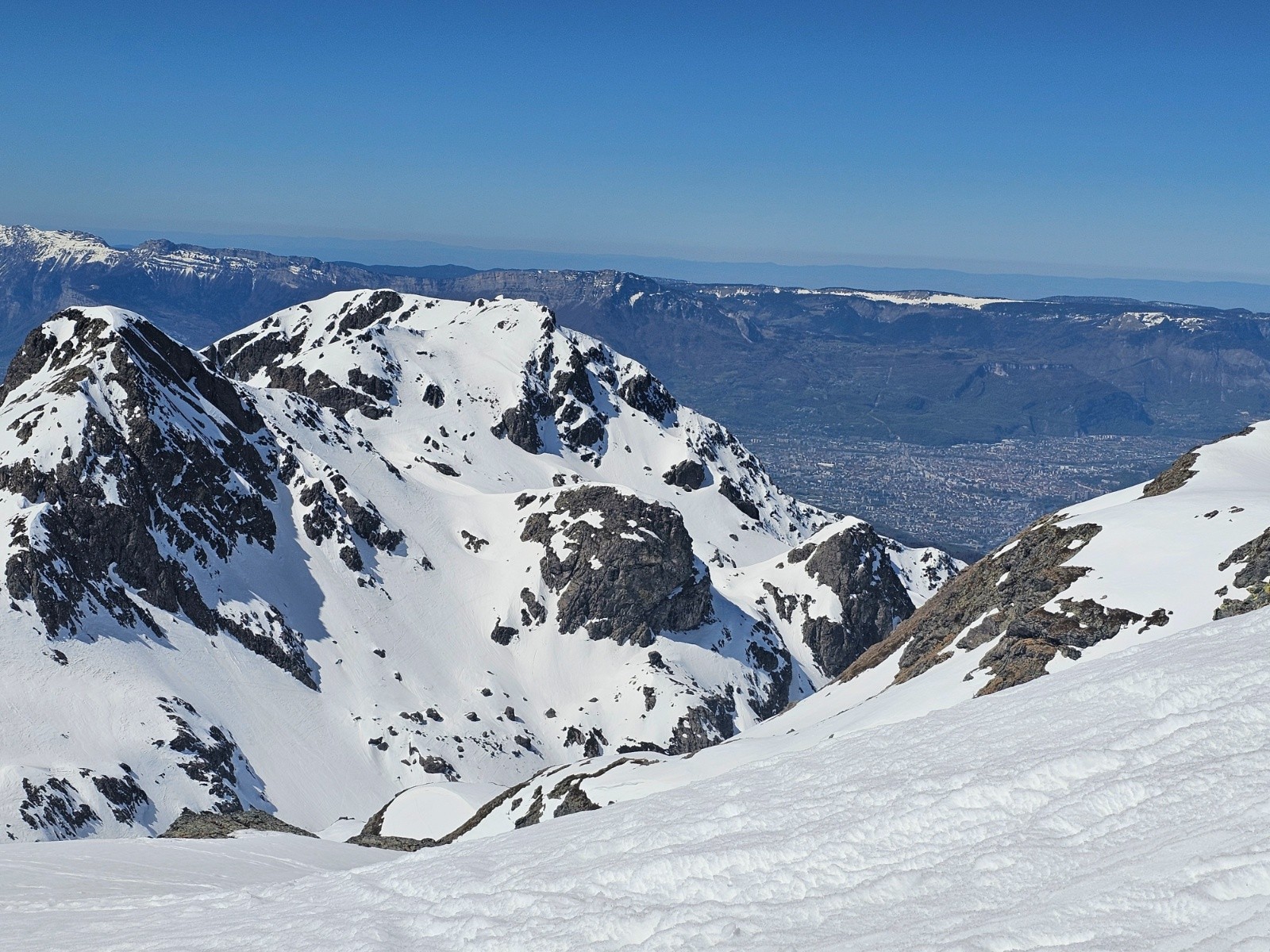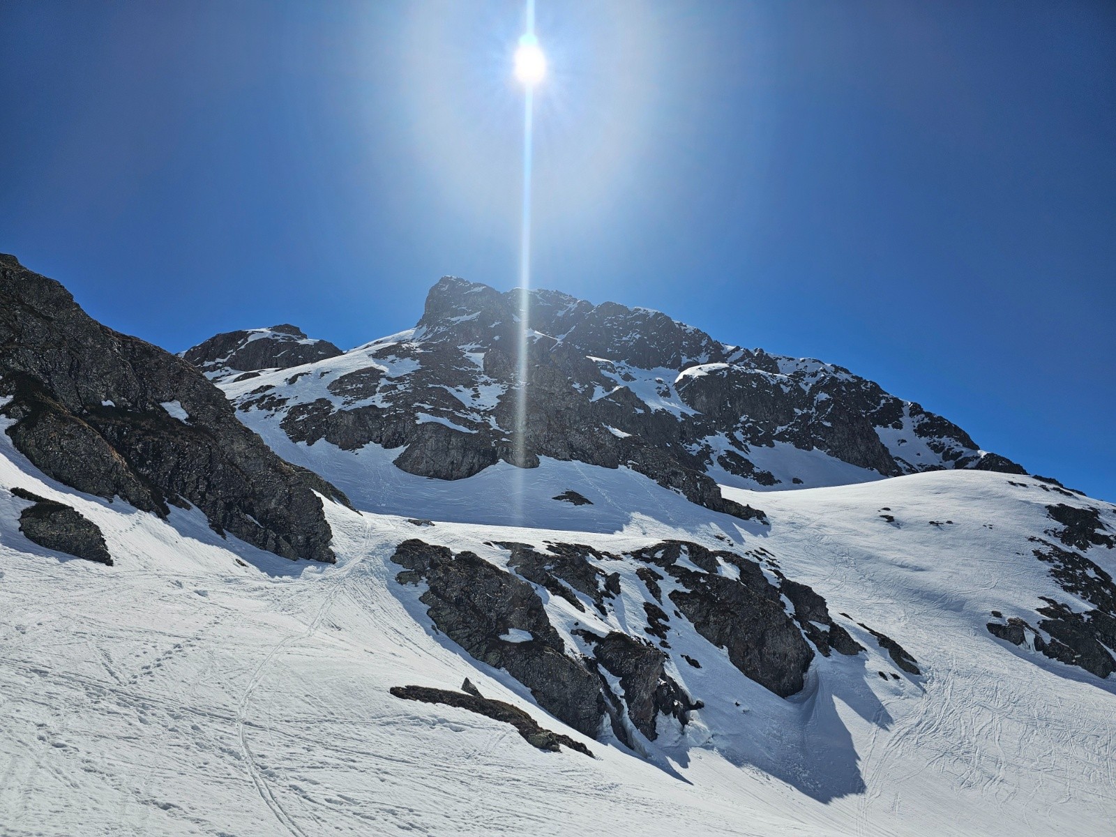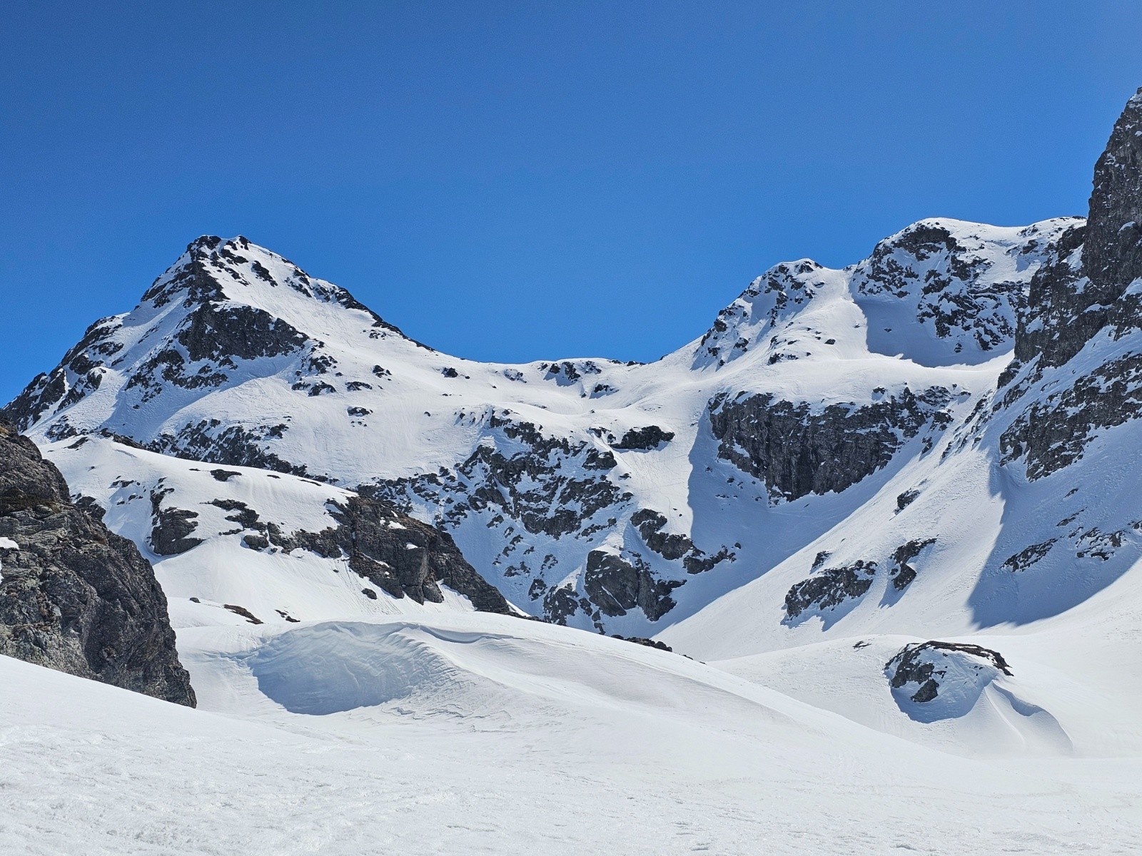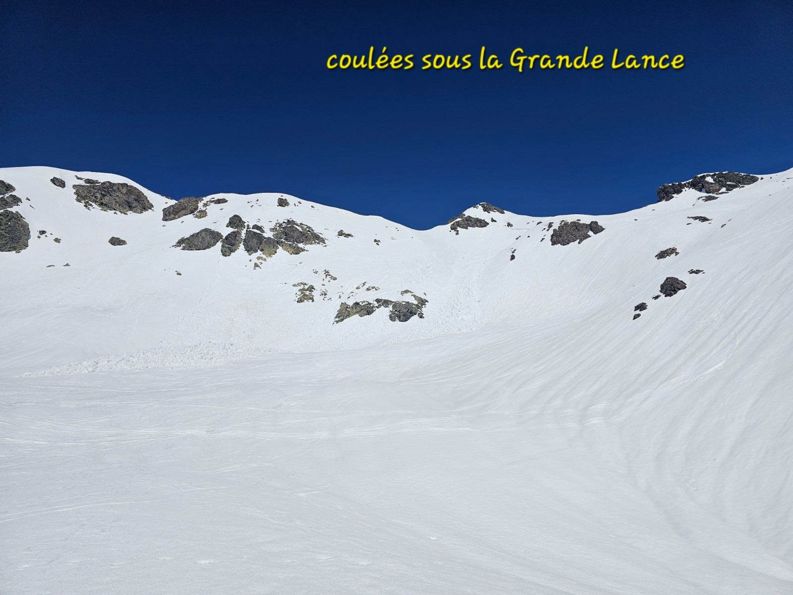 Conditions pour le ski : la couche reste consistante ; bon regel le matin ( les couteaux sont utiles), puis neige de printemps.