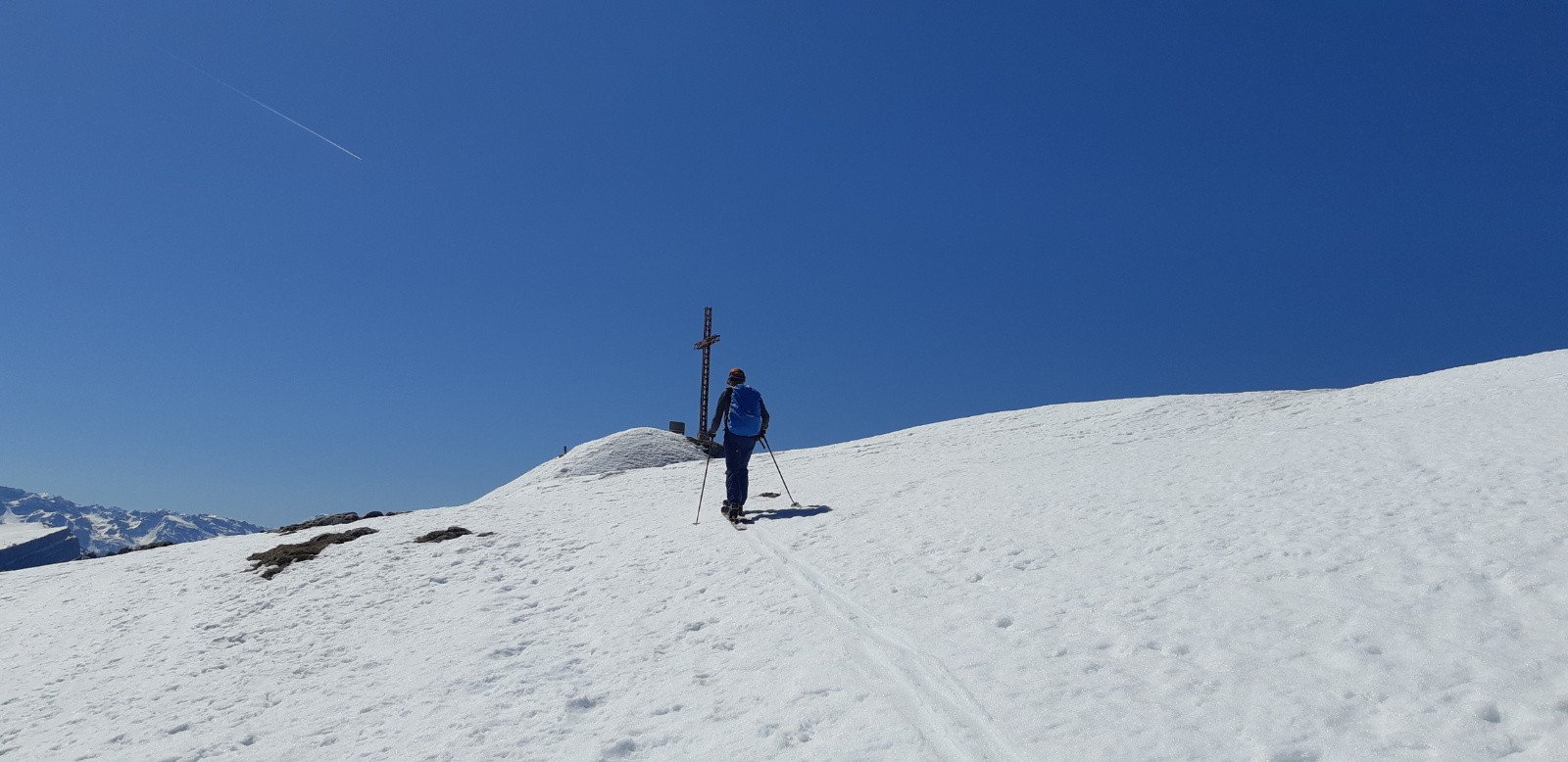 Conditions pour le ski : Pas de regel dans les parties forestières. Bon grip à la montée, couteaux préférable pour la passage du verrou à 35°, puis tout bon jusqu'au sommet.