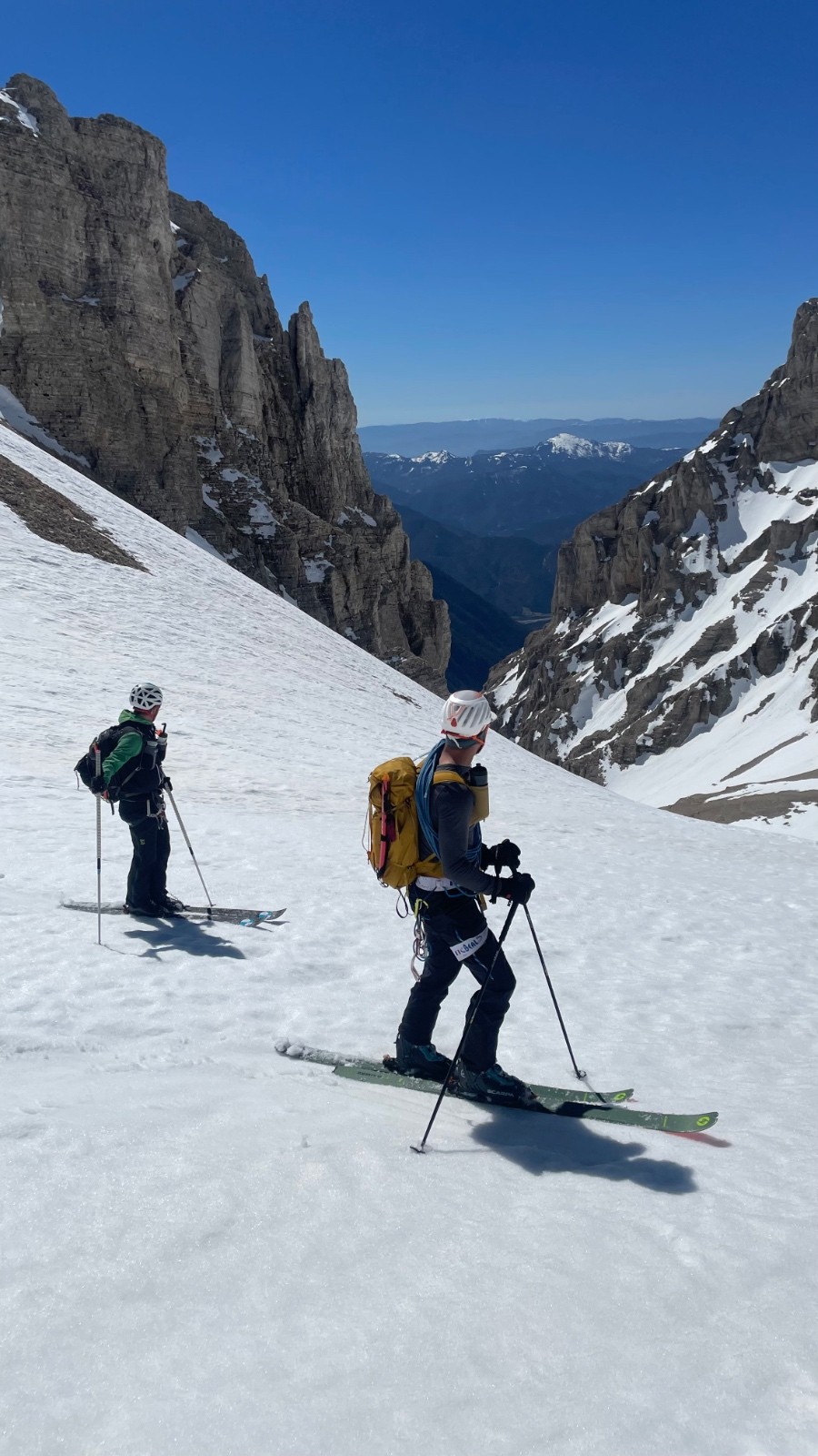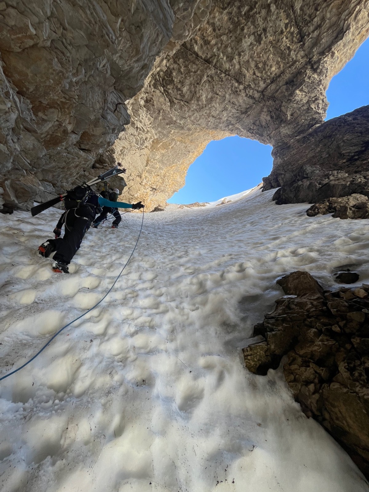 Nécessité des couteaux pour la traversée au pied de la combe Ratin ! Ça chauffe bien évidemment très vite mais montée efficace de la Combe.