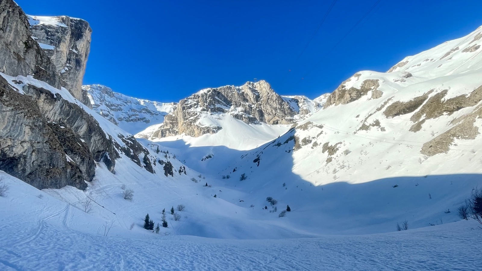 Plateau de bure vers 11h45 , puis descente par la Combe de mai qui a déjà énormément chauffé surtout sur les contre pente rive droite.